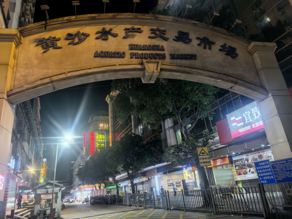 黄沙水产交易市场。我们的酒店就在黄沙海鲜市场旁边,白天一直没去逛过,晚上回酒店的时候顺路逛逛。不过真的有点儿臭有点儿脏!地面湿漉漉的,随时都有可能有水坑有死螃蟹、死鱼虾等!