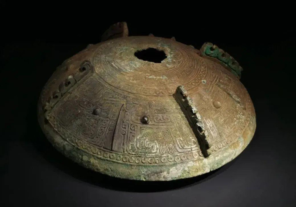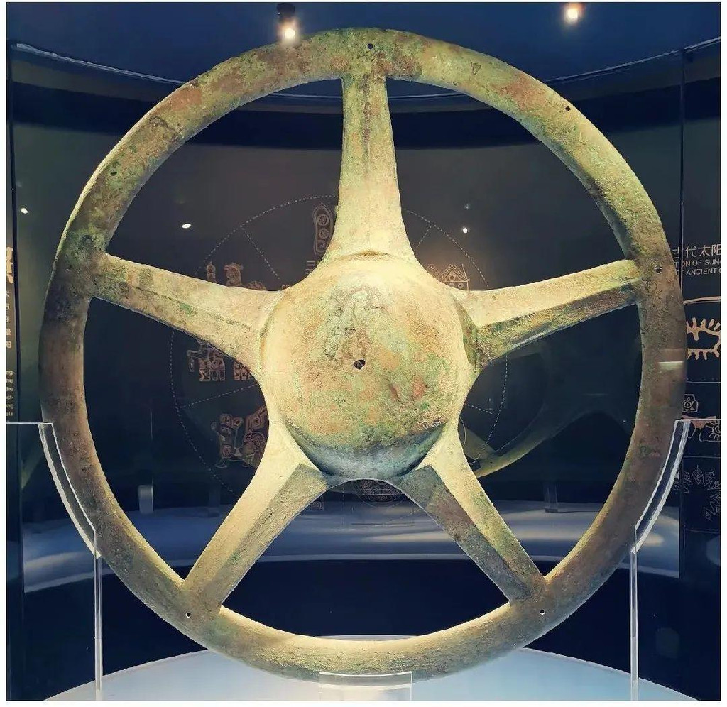 下图为青铜太阳轮,是古蜀太阳崇拜的见证物。