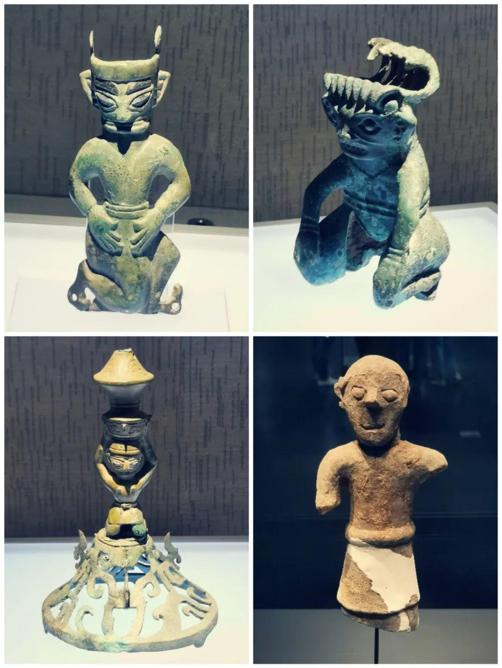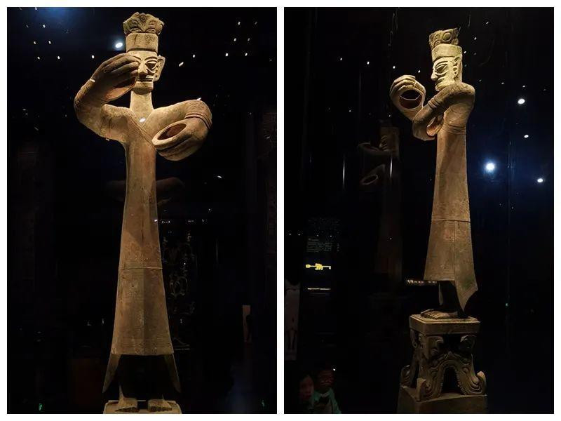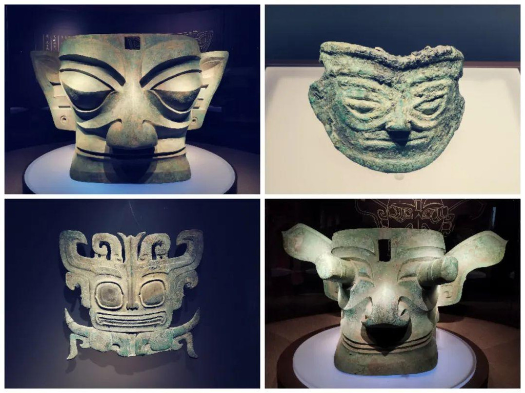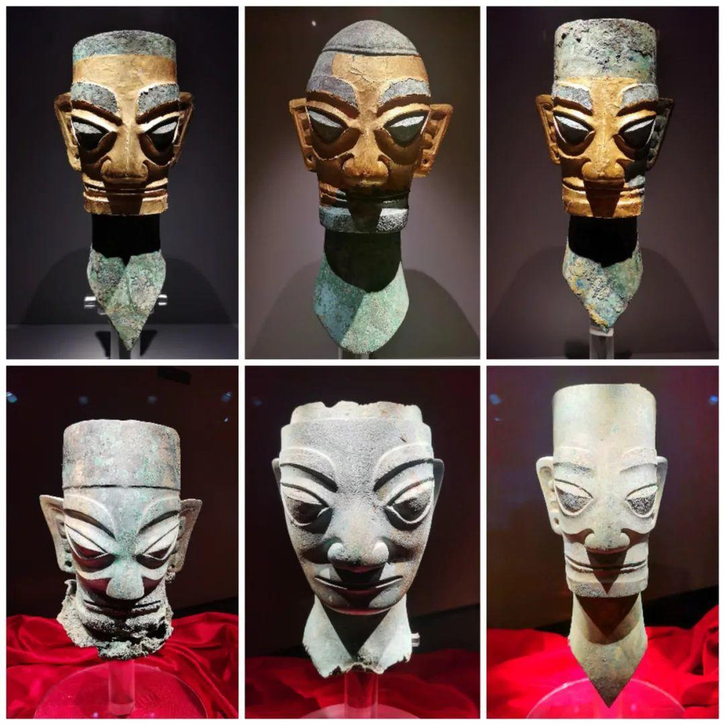 下面是古蜀国的青铜群像:他们是古蜀国众神祗的象征,反映了古蜀先民的原始宗教意识,折射出古蜀国的社会政治结构和神权统治体系。(有的带有金面罩)