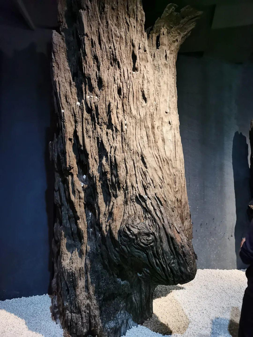 下图为一段乌木。乌木是川人对阴沉木的俗称,为百年古木经洪水、地震等自然灾变,沉埋于古河床的淤泥之中,在缺氧环境中经成千上万年碳化而成,也称“碳化木”。三星堆附近河床是乌木最集中的出产地之一,据测定乌木诞生年代与两坑文物几乎同时,可推想上古时代成都平原是一派森林茂密、古树参天的景象,正是这样的自然环境孕育了古蜀人的神树崇拜。川人把乌木尊称为“万木之灵”、“灵木之尊”。