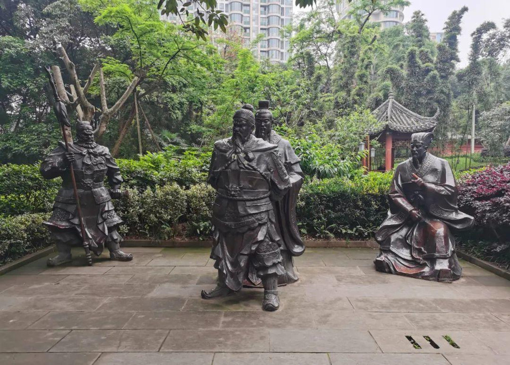 广汉又称雒城,是成都的北大门,三国时刘备攻打雒城,雒城守将张任出兵抵抗,遭生擒,刘备劝降,张任宁死不屈而被杀,刘备感叹不已,令收其尸首葬于金雁桥侧,后人奉为土主。房山湖公园就有刘备劝降张任的群雕: