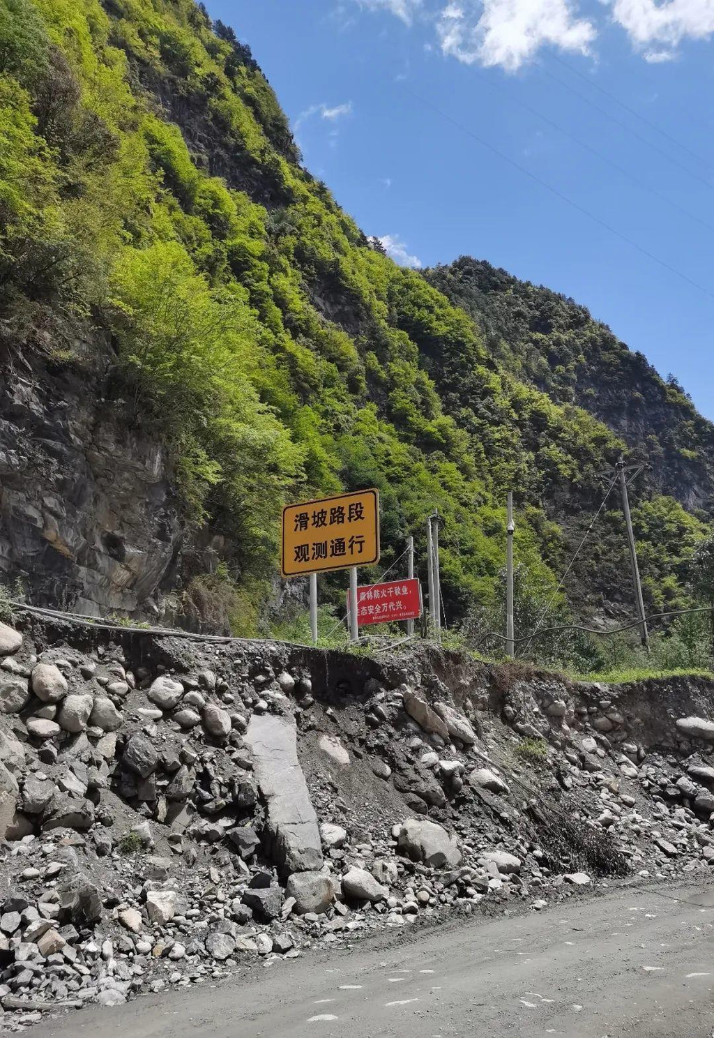 路上堵了好几次车,最长的一次是在一处山路落石区域,等候时一辆鸣着警笛的车呼啸而过,我以为前面出事故了,路过时看到原来发生落石,地面上全是碎石块,一辆工程车用“顶针”顶住山体上巨岩,工作人员指挥司机快速通过。到目的地后当晚就看到该路被封的消息......