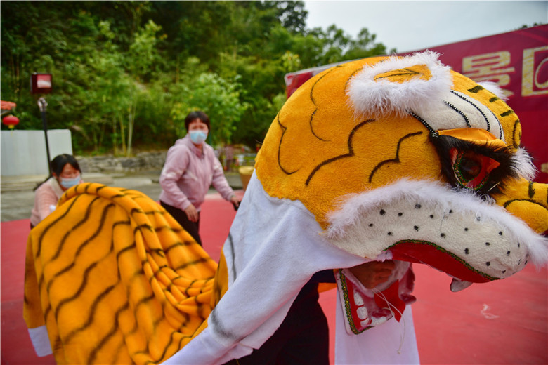 据景区相关负责人介绍,广宁是中国武术之乡,武术、舞龙、舞狮、舞虎都是广宁当地特色地域文化,狮虎都集武术、舞蹈等艺术于一体,凝聚了一代代民间艺人的汗水与智慧。直到今天,仍然保持着原汁原味的乡土文化气息。所以,虎舞的传承和发展具有重要的意义和文化价值,需要传承传播与创新,不断发扬光大,传承这几项优秀的民间技艺。所以,才想到在虎年春节复原舞虎的习俗,让舞虎重回大众视野,得以传承和发展,成为传统文化与民间技艺的重要项目,焕发出新的生机与活力。