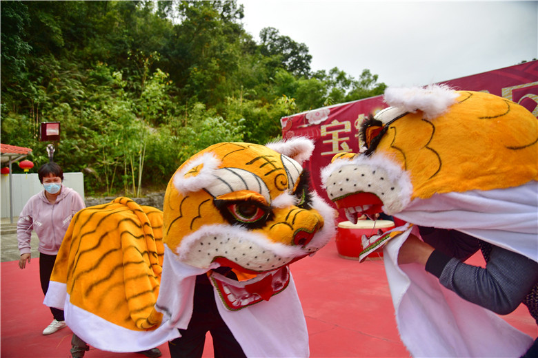 每逢春节,中国很多地方都有舞龙舞狮的习俗。在中国武术之乡肇庆市广宁县还有舞老虎的习俗,只是消失了很多年。2022年春节是生肖虎年,宝锭山景区特别复原了舞虎的习俗,在给游客们送上精彩独特的舞虎表演与虎虎生威的祝福的同时,也让游客了解这个武术之乡的历史与文化。1月29日,景区组织人员开始排练。