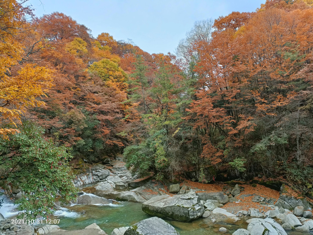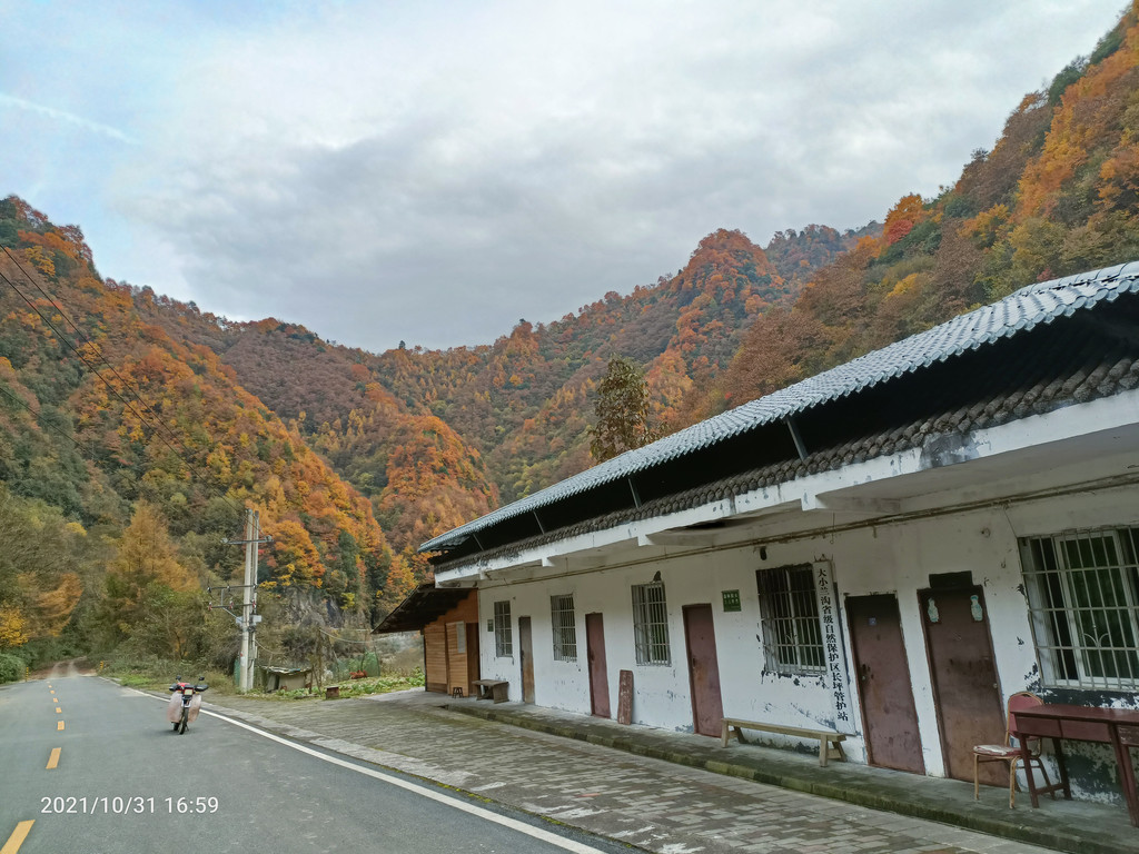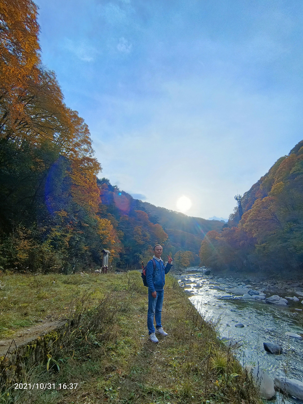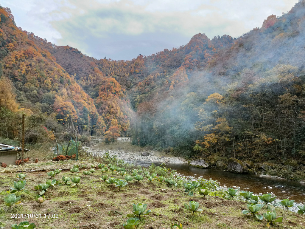 这里就是我们游客可到的大小兰沟的尽头啦,有位消防员叔叔驻守在这里,他说更美的还在里面,但是他已不觉得有什么了,因为每年每天都在看,他和另一位轮守在这里,自己养了鸡,种了菜,我们还和他攀谈了许久,那一刻真是发自内心的宁静,能来到这深处也是一种缘分,更加让我对一切充满了感激,爱人问我,给我钱让我一个人待这里愿意不愿意,我脱口而出:愿意,大脑还去深思了这个问题,我是只爱这里的秋天呢,还是四季都爱呢,从内心来说肯定最爱秋季,也只见过秋季,但光雾山的四季肯定都是很美的,它能净化人的心灵