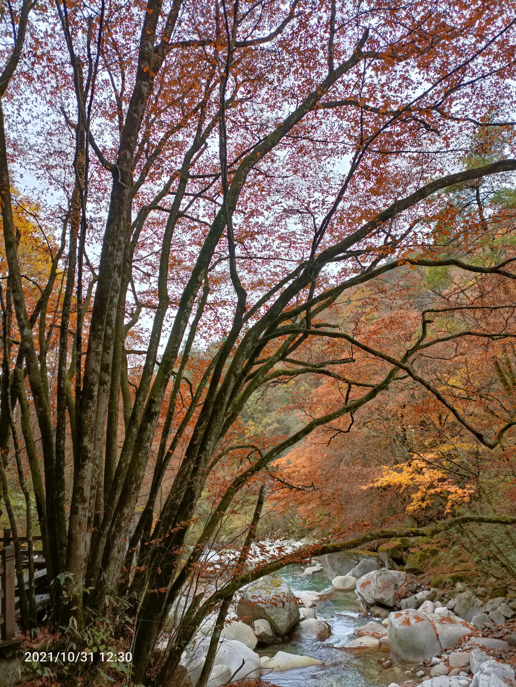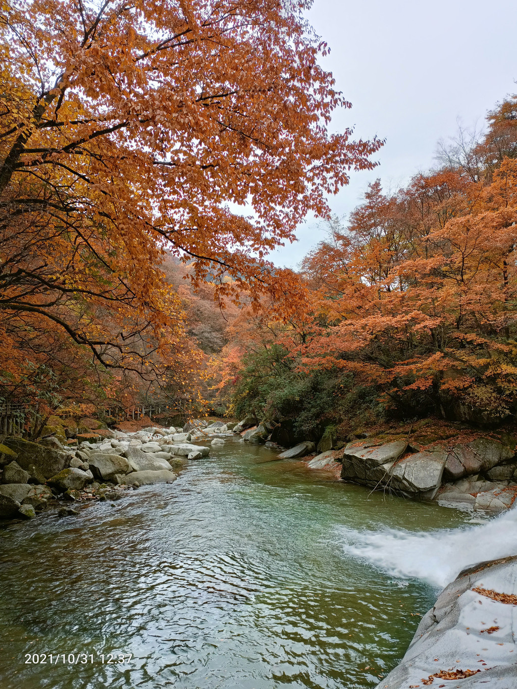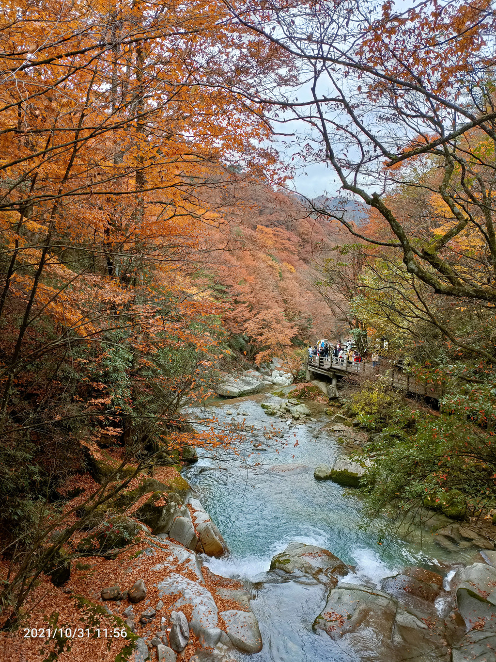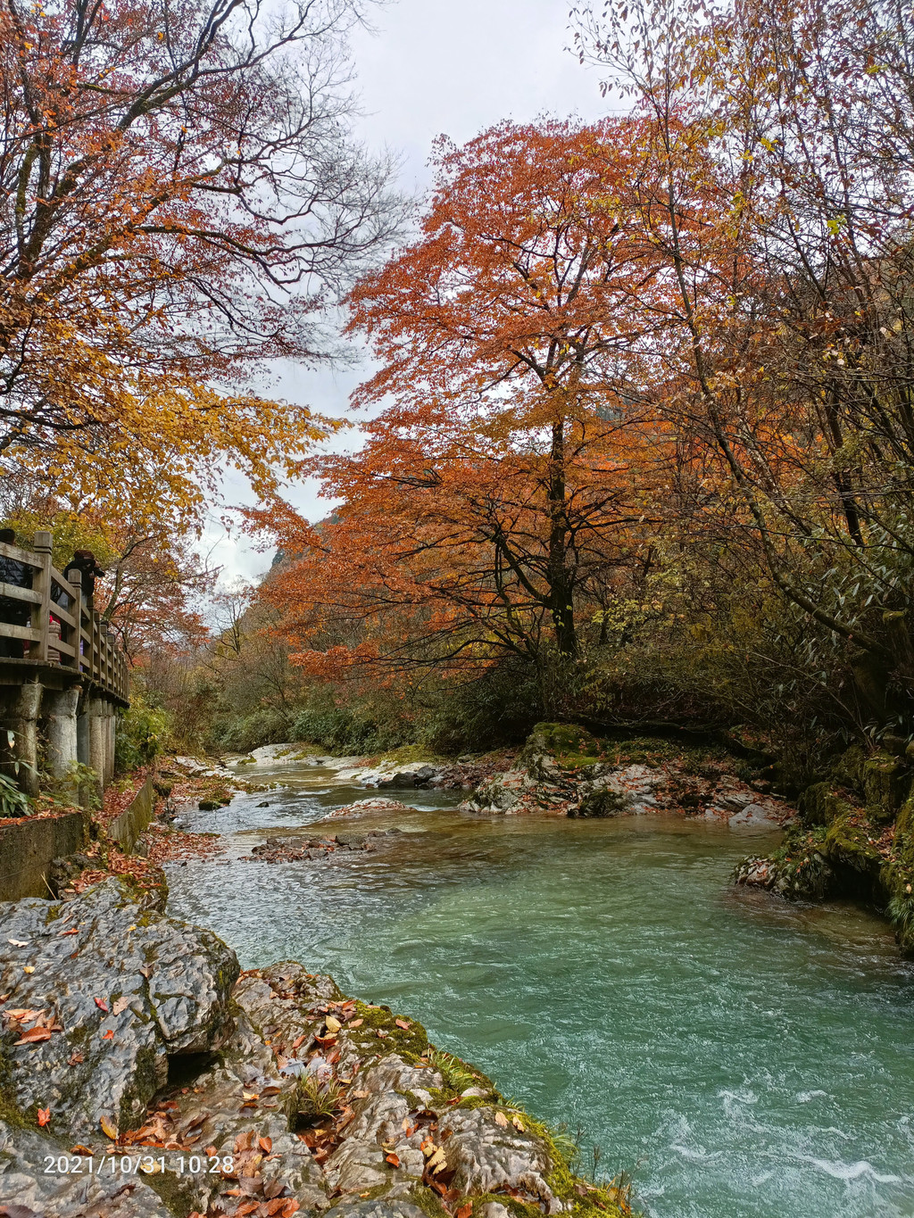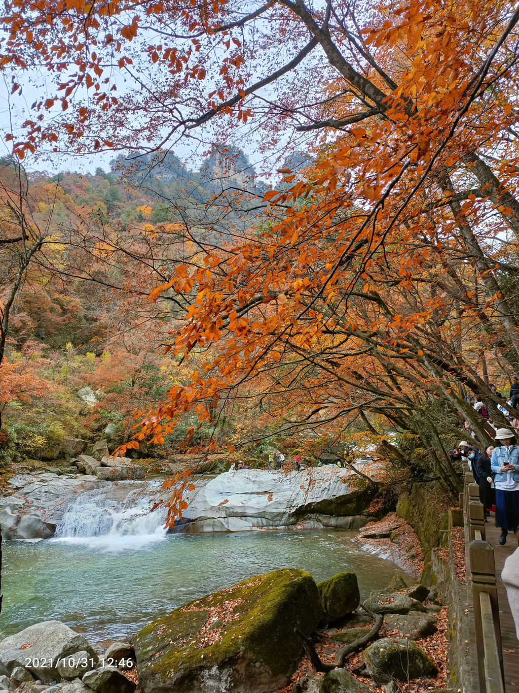 在此如有看到的我也想说天然画廊值得多停留,身在其中的时候,因为是红叶观赏期游客太多,虽想停留,但后面的人前赴后继只能被推着往前走,因此我可能在天然画廊的时间连半小时都不到,也是这次的体会让我感到就算只玩大坝景区,也最好给到两天的时间来游览,晚上可就住在景区内的牟阳古城。