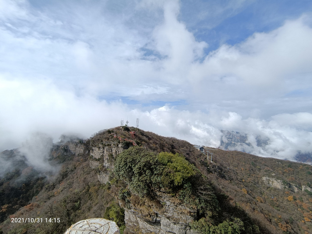 山顶上风很大,云雾被吹的一直在动,相当于景色一直在变啦,再次感激老天了让我看到此景