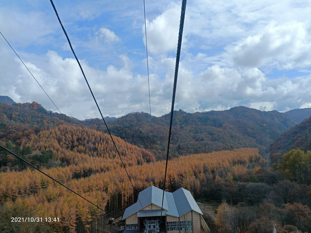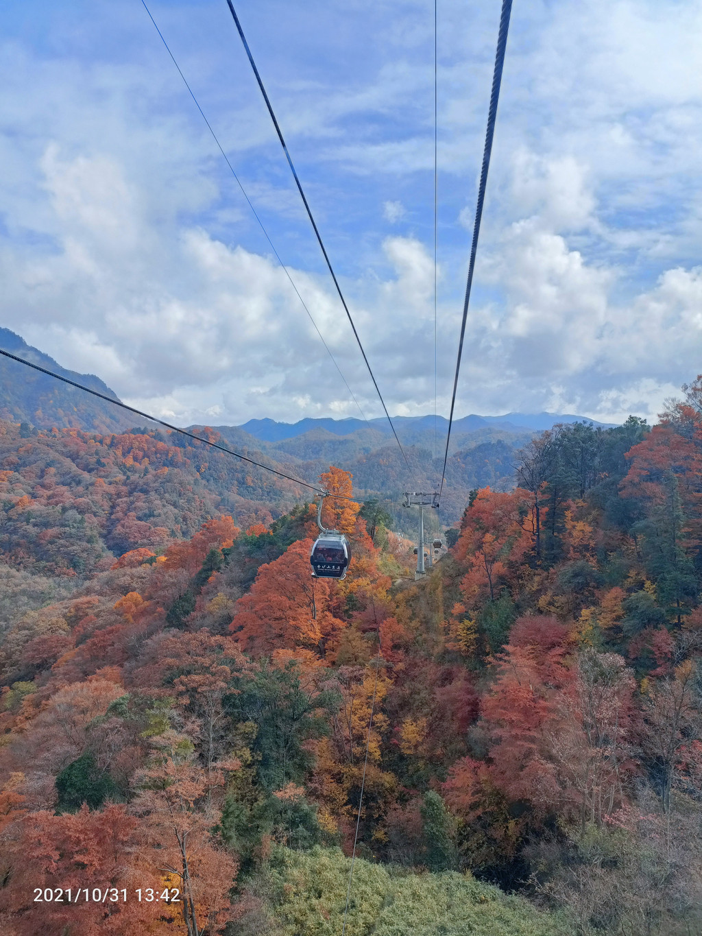 黑熊沟看完已是中午时分,一点感觉不到饿,在沟口等大巴车等了好一会儿,因为是中途上人,也是一个自愿者帮我们联系车位的,同行要去香炉山的还有另外两位姑娘,到香炉山后现场买了索道票不用排队,坐的人不是很多了,没想到几分钟就坐上去了,这索道票卖的可真是贵呀,往返150元/人,真是可用金钱衡量时间的典范,整个光雾山玩下来费用不低,只能说景色醉人想到也就值了