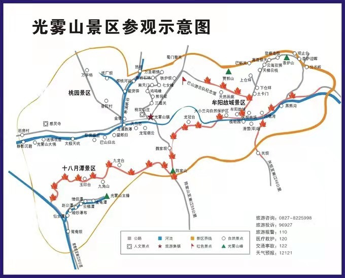 2021.10.30我和爱人从重庆主城出发,奔向了我久久挂念的光雾山,光雾山的秋景早已闻名于心,我为此心神向往三个年头了,就在去年实现了,脚步终于踏上了四川巴中南江光雾山镇米仓山国家森林公园,光雾山主要几个景区为大坝(又名米仓山/牟阳故城景区),十八月潭,桃园景区,,其中我最想去的就是大坝和十八月潭,本也是如此打算的,选的时间是周末两天,但因为爱人工作关系,出发的那天下午要开会人必须在,导致只能去一处,所以还是选择了大众路线去的大坝景区,在去之前我就每天在关注光雾山官方发的实时状况,也在购票平台上看去过的人实时评价的照片,想着红叶应该是最好的时候,当时一直没有看到天然画廊的还生怕叶子掉了,因为去光雾山我最想看的就是天然画廊,在去之前我也看了好多攻略,但用上的甚少,在景区发生很多浪费时间的行为,后面再一一道来。总之,游玩下来觉得光雾山是非常值得一去,下面请欣赏此行美图吧!!!