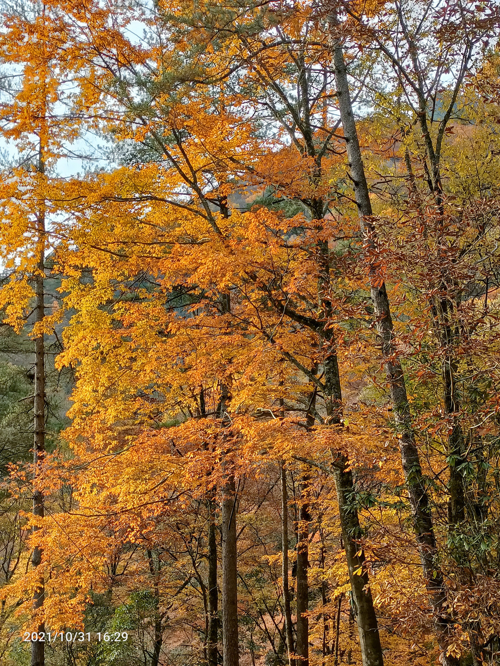 进黑熊沟走了一段就看到这还行,其他两边叶子都掉光了,当时还以为就这点看头还在这拍了好久的照