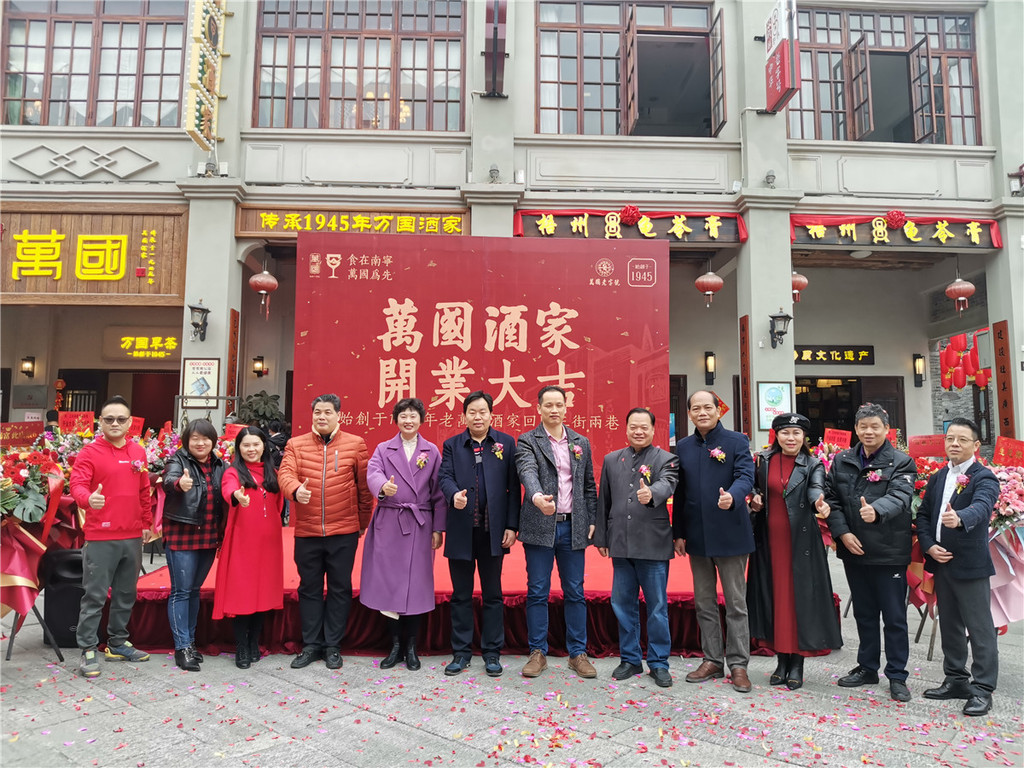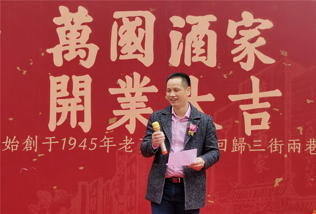 开业盛典上,广西万国品牌管理有限公司总经理侯潮先生在开业致辞中说到,始创于1945年的万国,76年一路走来,是众多南宁老一辈人舌尖上的记忆,万国曾经历过辉煌的时期,也走过最困难的时期,但万国精神和万国这个老字号饮食文化金字招牌没有消失,一直都传承下来。万国作为南宁本土的饮食行业代表,他们从未停止对万国品牌定位优化和创新,一直在等待时机,将重新恢复万国酒家的辉煌。万国酒家三街两巷项目,万国将秉承“传承、融合、创新”的发展理念,将这一南宁特色老字号饮食文化品牌继续传承发展下去,致力把三街两巷万国酒家项目打造成南宁最具代表性的饮食文化示范窗口。未来万国将朝着“创百年老字号知名品牌,树邕城饮食文化新标杆”的目标迈进,我们相信在大家的支持下,万国一定会越来越红红火火,让更多来自五湖四海的朋友们领略南宁老字号的风采。
