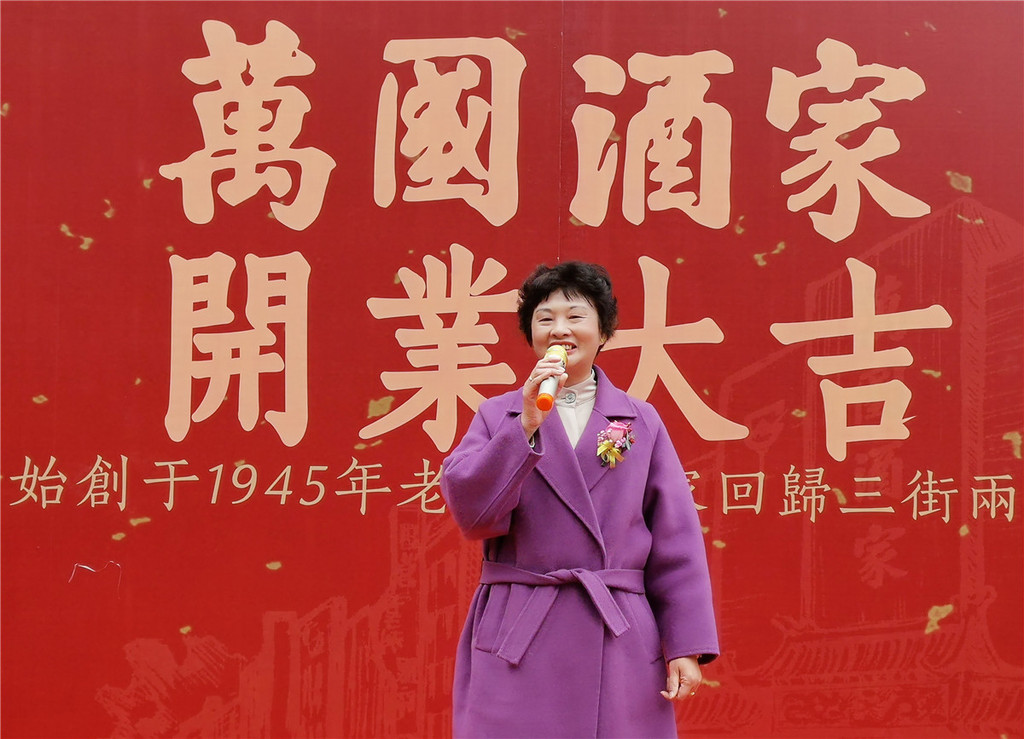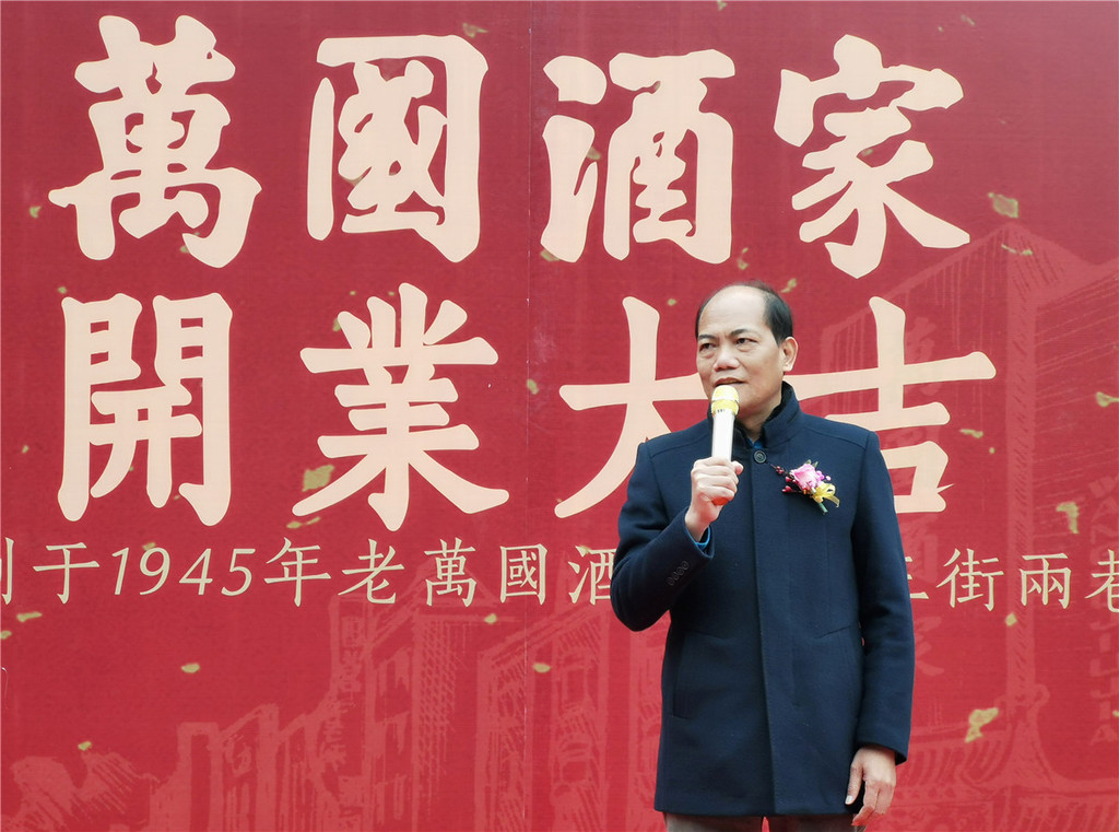 南宁市餐饮协会会长温美兰女士发言:我是一名地地道道的南宁人,还记得小时候老一辈人提着鸟笼来到万国,万国的生意非常的火爆,现在把万国这个品牌继续经营下来,能给南宁人又想起这种儿时的记忆,这是南宁人的福气。这个地点选的这么的好,又在邕江边上,把广西老字号发挥到最好的时光。虽然2020年遇到了疫情,但是餐饮行业的恢复也是非常迅速的,基本上每天都有不少剪彩开业,红红火火。给食客们带来广大的美食选择,祝愿万国红红火火,生意兴隆。