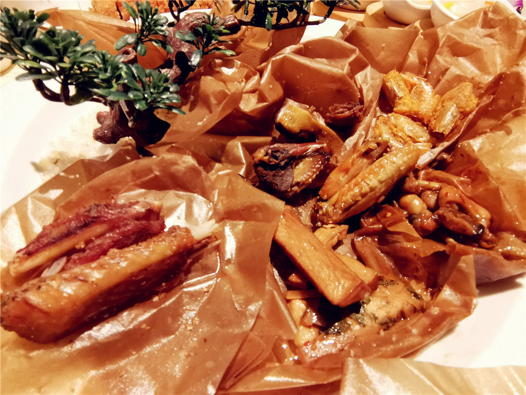 万国酒家与时俱进,将传统与创新融合,打造民国经典1945—老万国纸包系列传承菜:万国八宝。