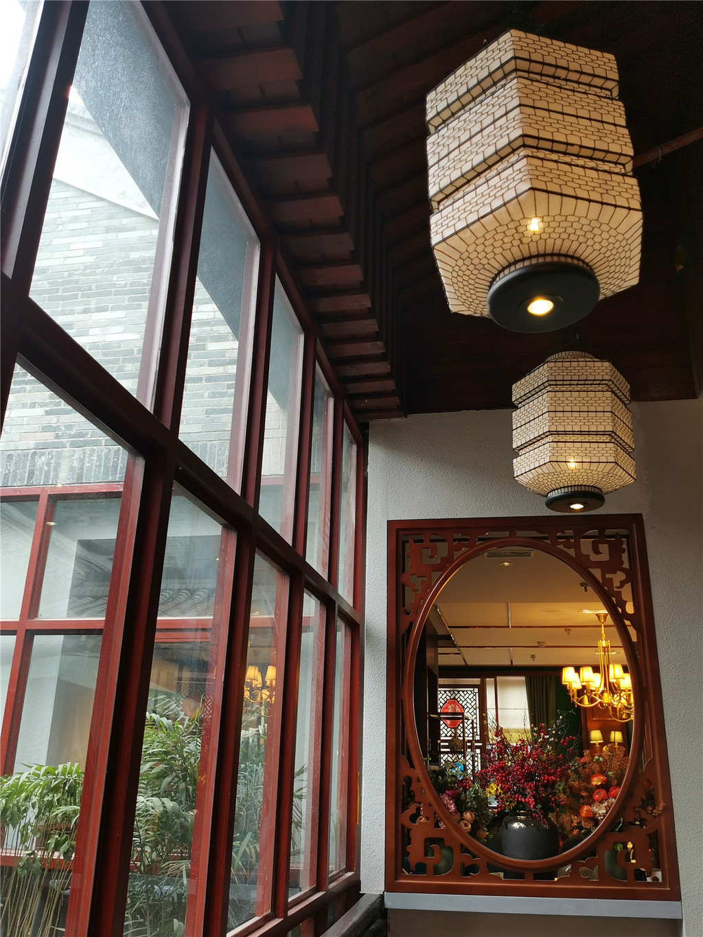 老字号焕发新样貌,复古时尚的餐厅设计,大量运用了老南宁如意窗花、彩色琉璃窗、民国时期的木面装饰与华丽的金色天花、精致的镂空隔断搭配雅致的墨绿色墙面,浓浓的民国风情中带着时尚。