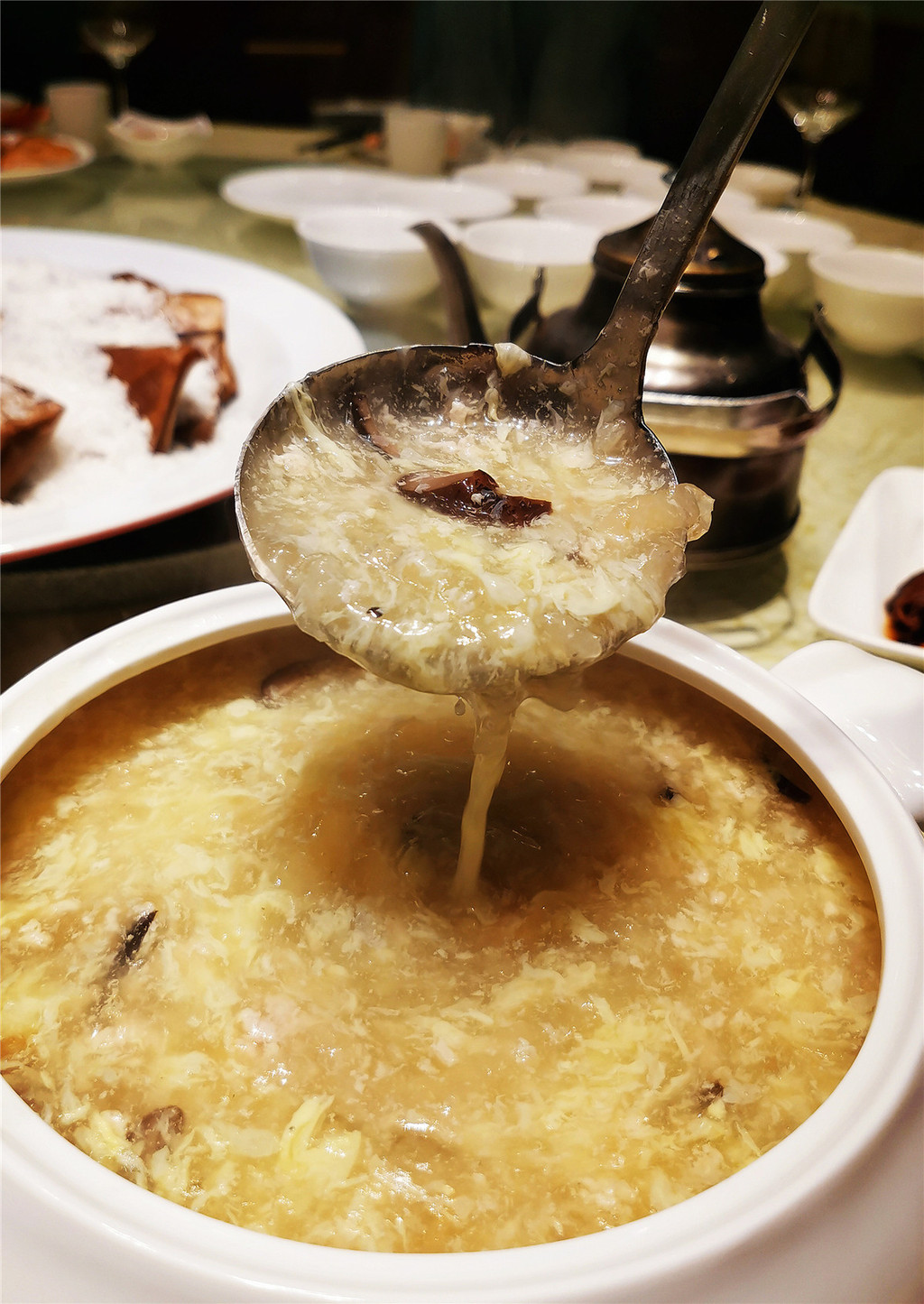 80年代南宁好多酒店,举办婚礼的时候必须上的一道菜,每年春节,南宁市很多人也会在家里做的一道美羹,不过现在已经逐步的消失。这鸡茸宴利用猪皮、鸡蛋调配的羹,惟妙惟肖模仿鸡茸的口感,吃进嘴里还能尝出宫廷鱼翅羹的美味,万国鸡茸宴,你一定要尝!