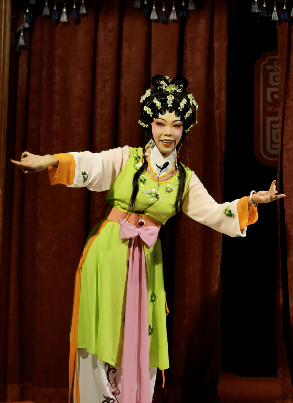 当当当,眉眼抬起,水袖一甩,音符起落,声调婉转……