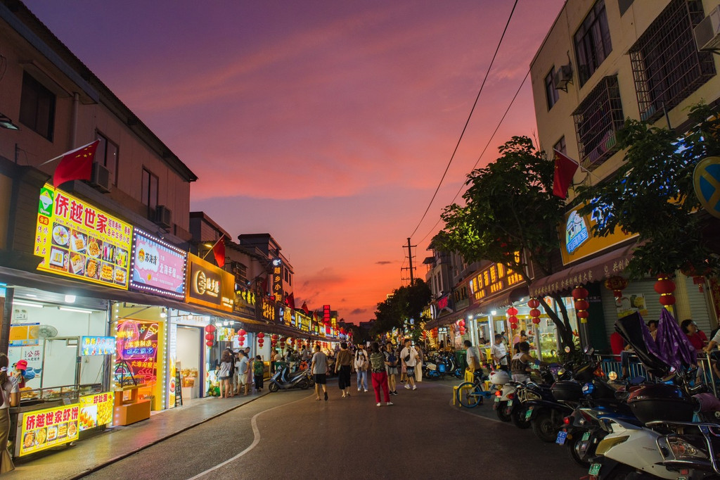 侨港风情街位于北海市区南部的侨港镇,是 北海 最有名的美食街。这里是 北海 最热闹的街区,因为靠近码头居住着许多 越南 归侨,所以小镇被称为侨港。我们当时赶到的时候正好傍晚七点左右,还邂逅了一场超美的晚霞,整个天空都被渲染成迷人的橘红色,令人沉醉。