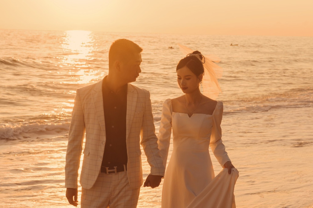 偶遇拍婚纱的恋人从眼前走过,让这片柔美的海滩又多了一丝丝甜蜜的感觉。我也多么希望有一天能带着心爱的人来到这里,彼此牵着对方的手,任由海风轻拂,眼里只有彼此。