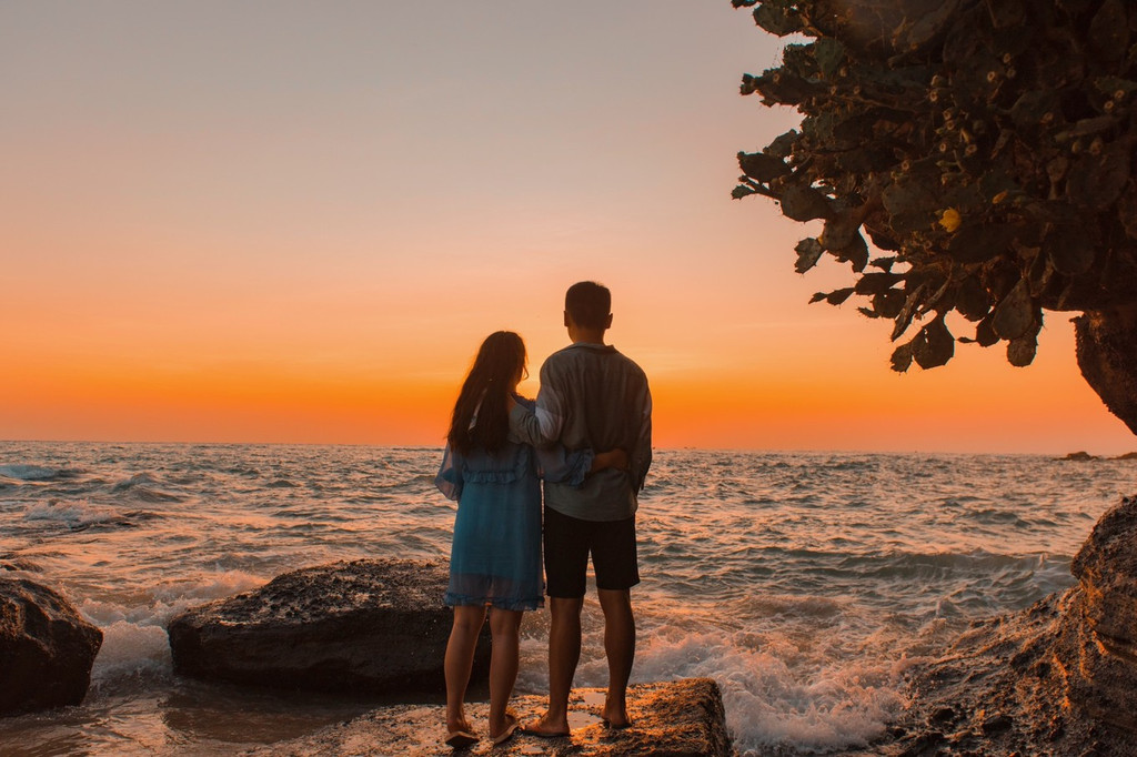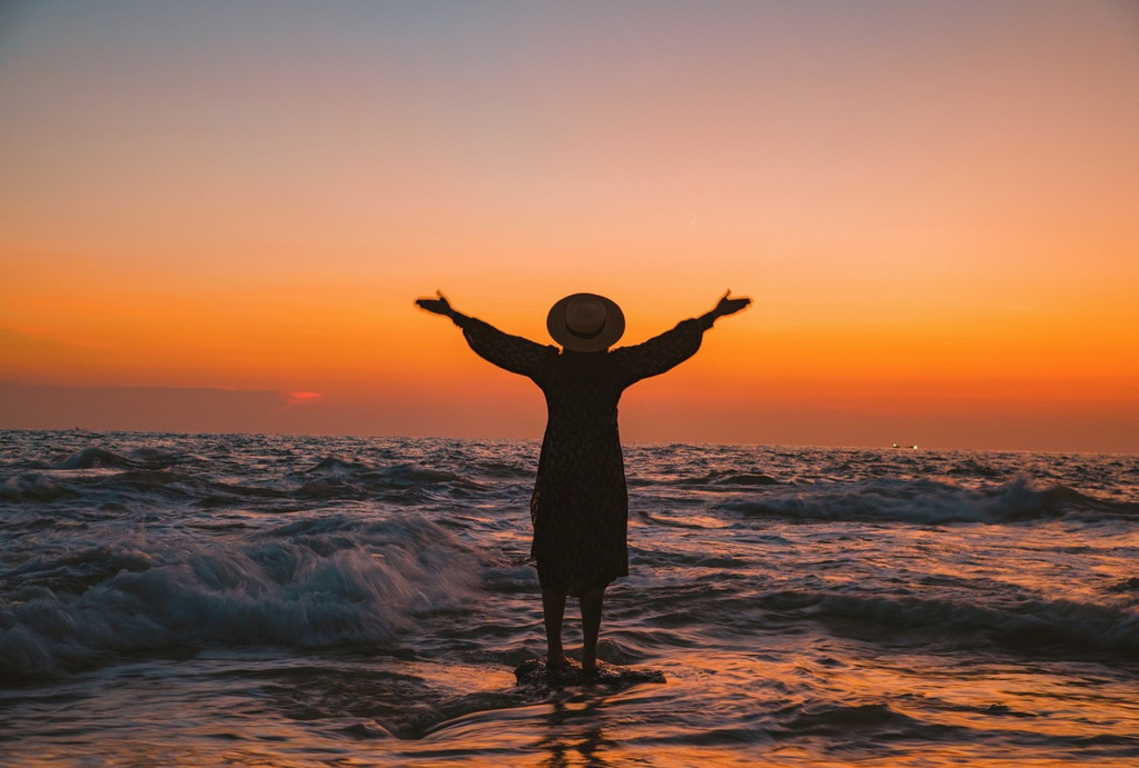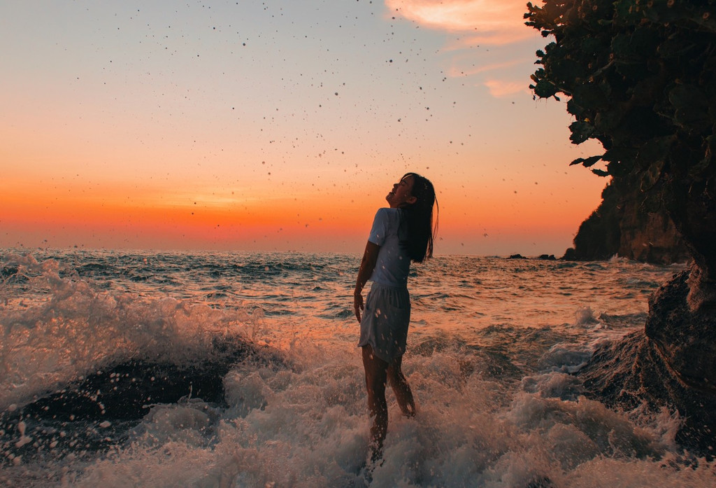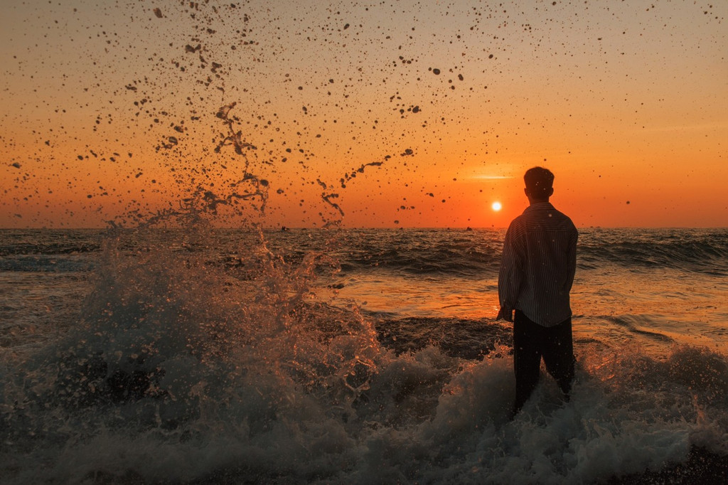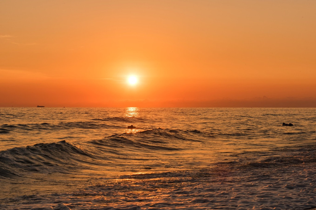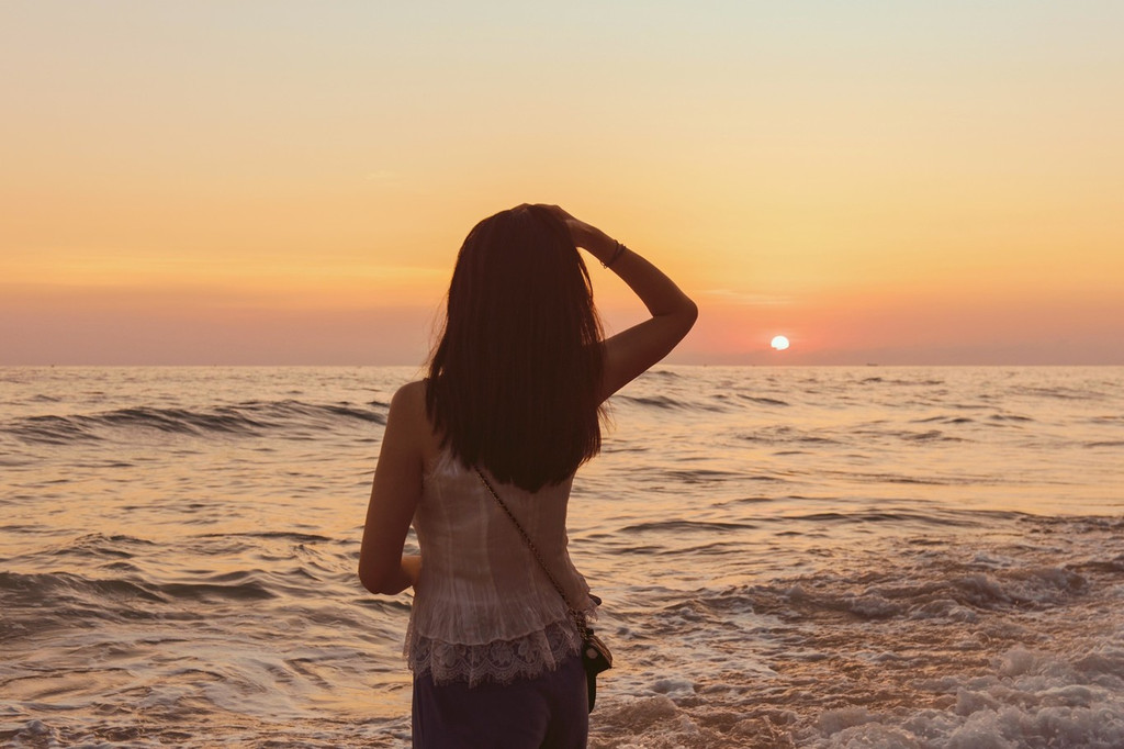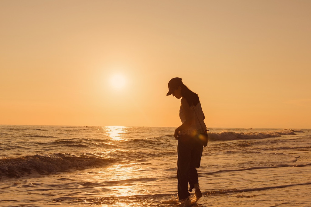 水平线之上,波光粼粼的大海肆意的翻涌,只有此时此刻正沐浴在落日之下的人,才能够领受这最后的光明,久久不舍得离去。