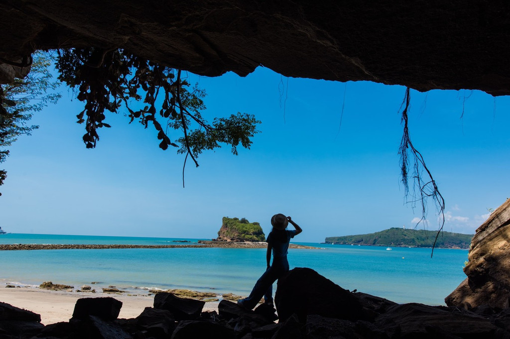 除了鳄鱼山,如果想找一个安静的地方呆着,不想被打扰,涠洲岛上还有一个大山洞值得一去,导航离岛然后一直步行向前就能找到,这里的场景特别震撼。海水清澈见底,天空湛蓝,每个地方都想拍下来留作纪念。