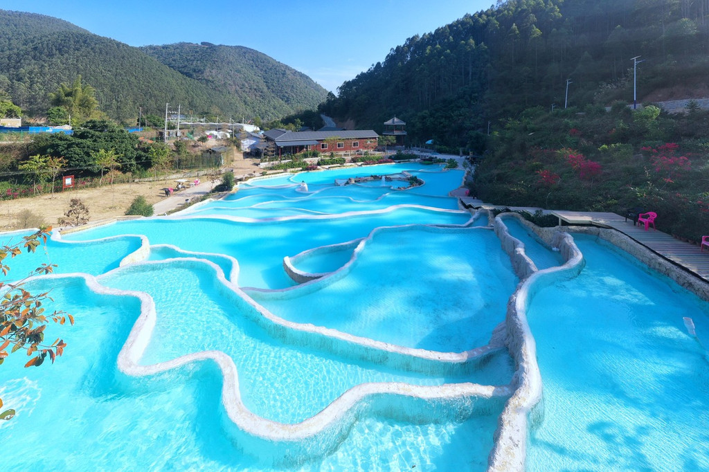 在十万大山布透温泉看蓝色叠瀑,美得融化了人的心房