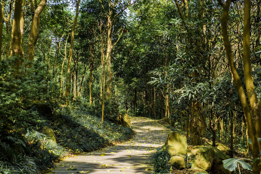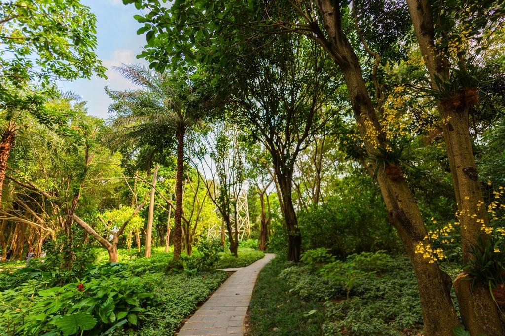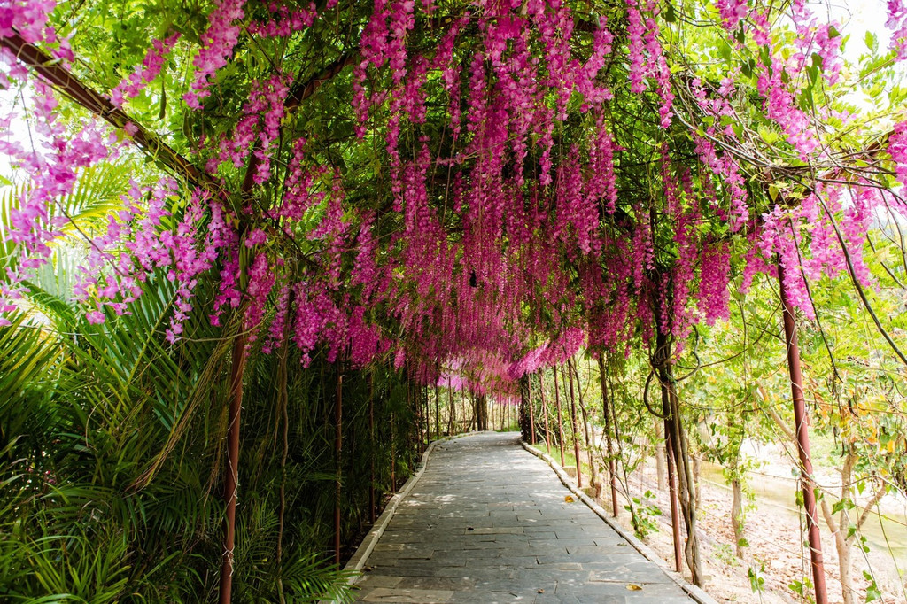青秀山里面拥有凤凰岭、青山岭等18座大小岭,山峦层层叠叠,雄奇俊丽,古树参天,是远离城市的喧嚣,寻求心灵净土的不二之地。园中每一处角落长出的花朵,都开得浓烈且柔美。