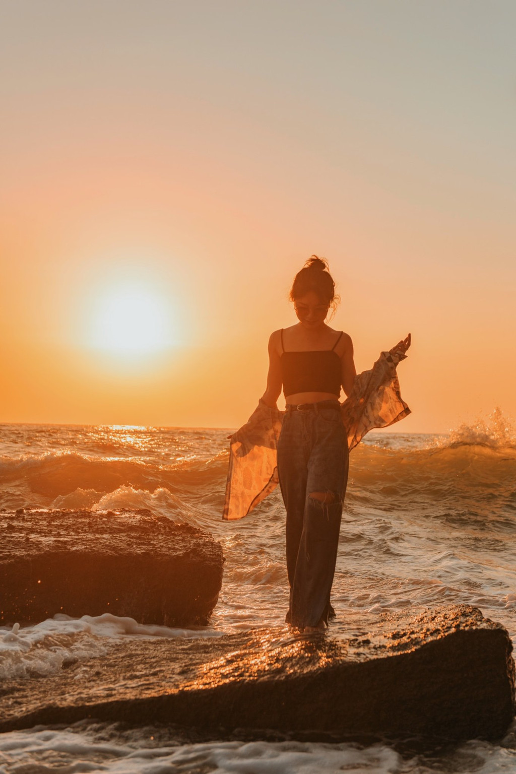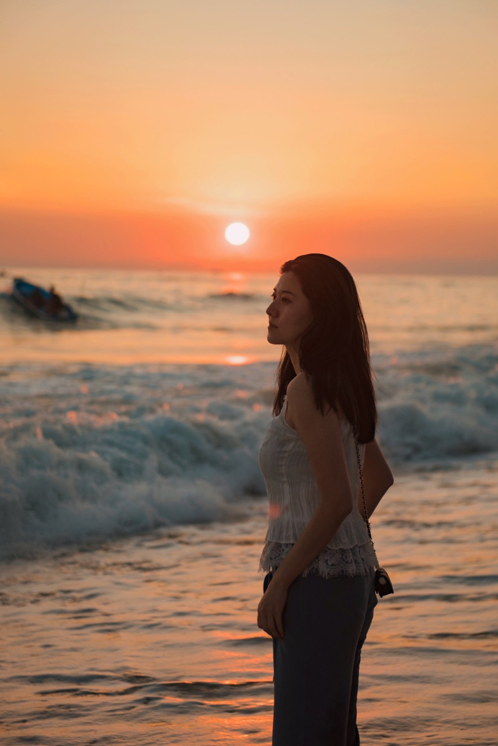 脚踩在柔软的沙滩上,看夕 阳西 下的场景,时间都慢了下来。所有的思绪也随海浪声飘向远方。