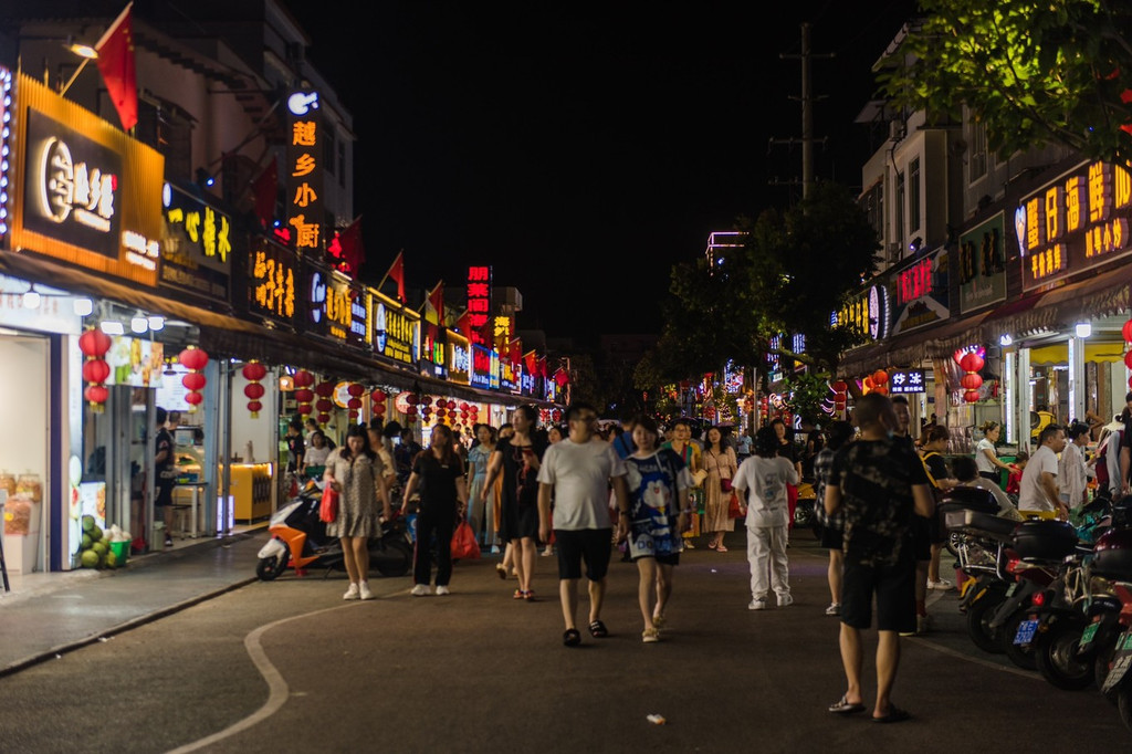 天空逐渐黑了下来,灯光照亮了整条街,热闹的夜生活也从此刻开始,熙熙攘攘的人群络绎不绝...