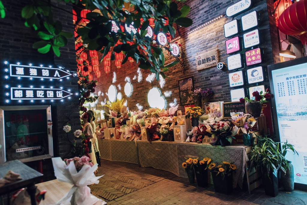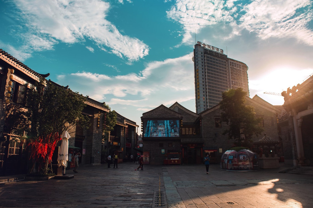 当夜幕降临,华灯初上,这里就变得格外的热闹,五颜六色的霓虹灯与月色相互辉映,让整条街都更具魅力了。这里的房屋建筑依然保持着青砖青瓦清水墙,砖木结构有着硬山式的明代的仿古建筑,还有民国时期的中西结合的建筑风格,走在青石板铺设的小道上,仿佛回到了百年前的古邕城。