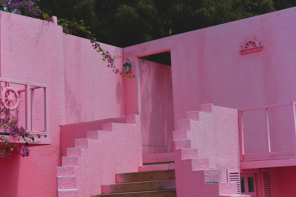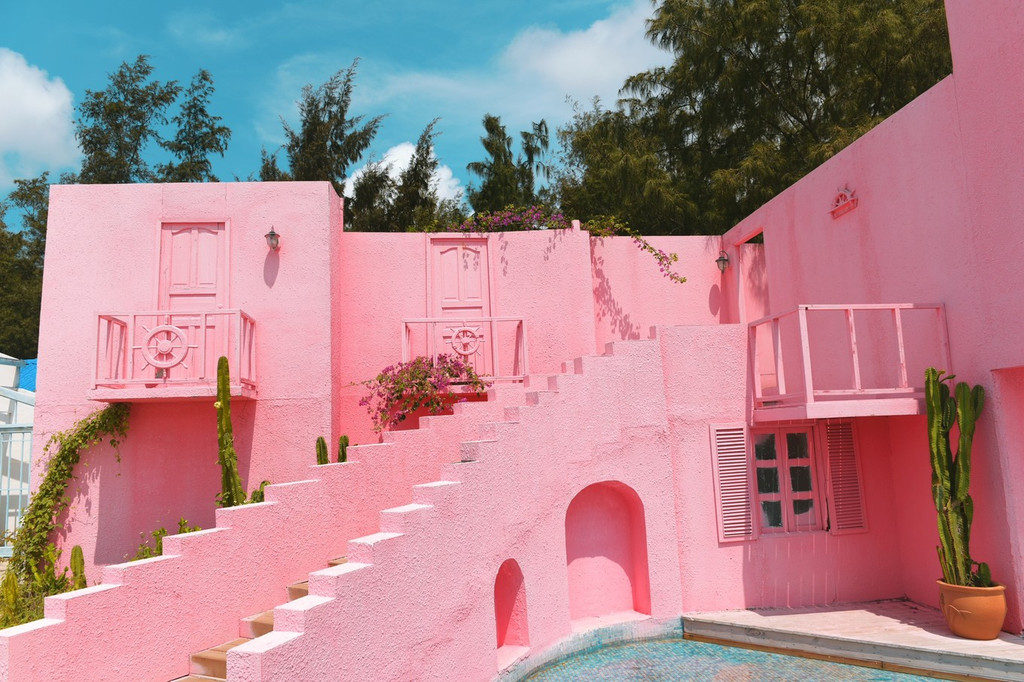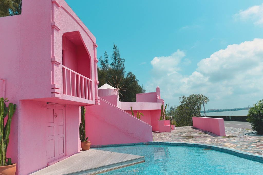 终点这里还建有一大片适合拍照的打卡环境,有粉色的房子,鸟巢秋千等道具,颜色出挑,引人瞩目,粉色与蓝色的反差,给视觉带来强烈的冲击。