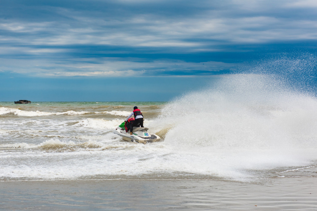 踩着白浪滩和金滩的浪花自由翱翔,坐一下刺激视觉的摩托艇