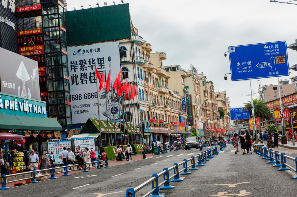 进入 东兴 口岸的“国旗街”,两边充满了爱国主义情怀。
