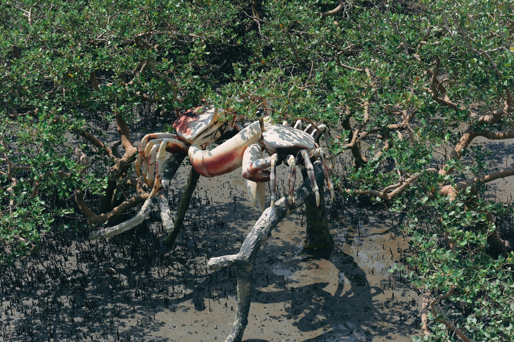 湿地是地球必不可少的生态系统,螃蟹在树上嬉戏,仙鹤飞舞各种动植物在这里快乐的生活。
