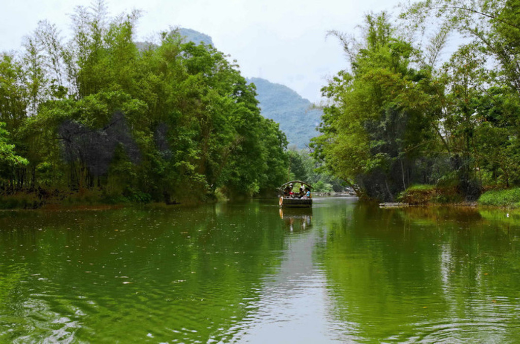 看到典型的喀斯特峰林地貌景观,看到凤尾萧萧,龙吟嘀嘀的碧江竹影,看到古风淳厚的壮族村落,还有那天然生成的崖壁画。