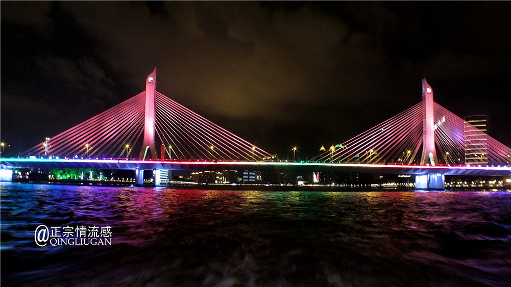 从江面上换个角度看广州塔七彩小蛮腰,你那么美、那么美、那么美美美美美~好想一把搂定你!江浪把游船轻轻的摇......享受这按摩般的夜游!