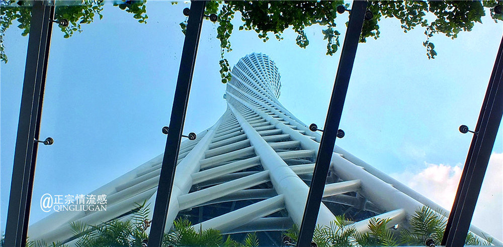 我们从西登塔入口进入,乘电梯来到32层,在最佳摄影点仰视广州塔那旋转的魅力。