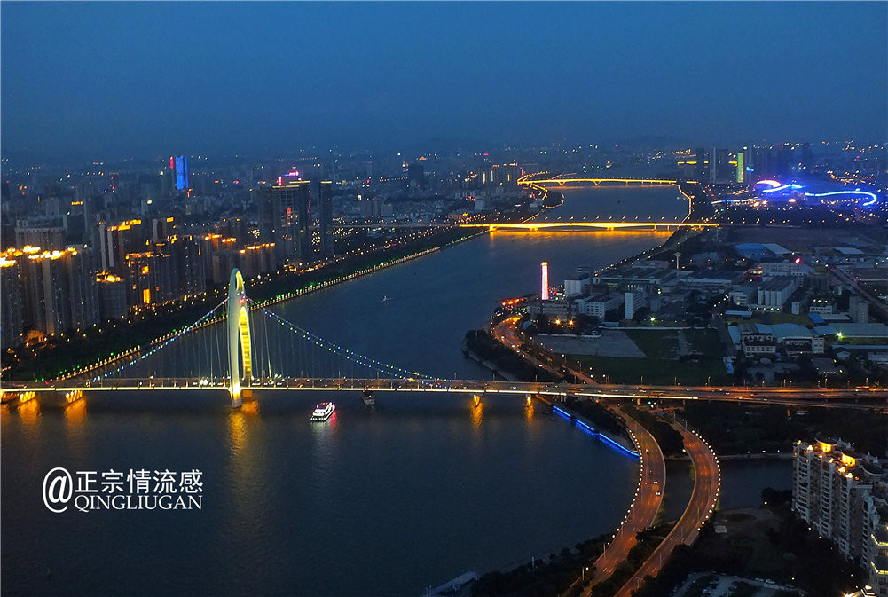 珠江水、浪打浪,伴着海印大桥“扬帆远航”,海印大桥像两只站立的公羊,寓意美丽的“羊城”广州;那伸展的斜拉索,又像是素琴在演奏新广州华丽的乐章......