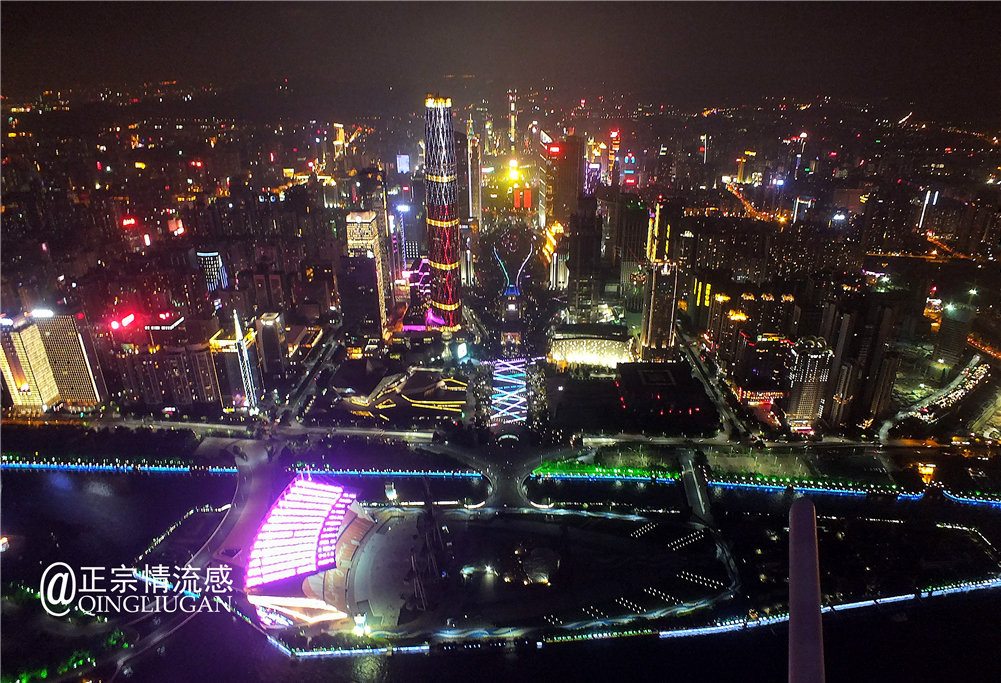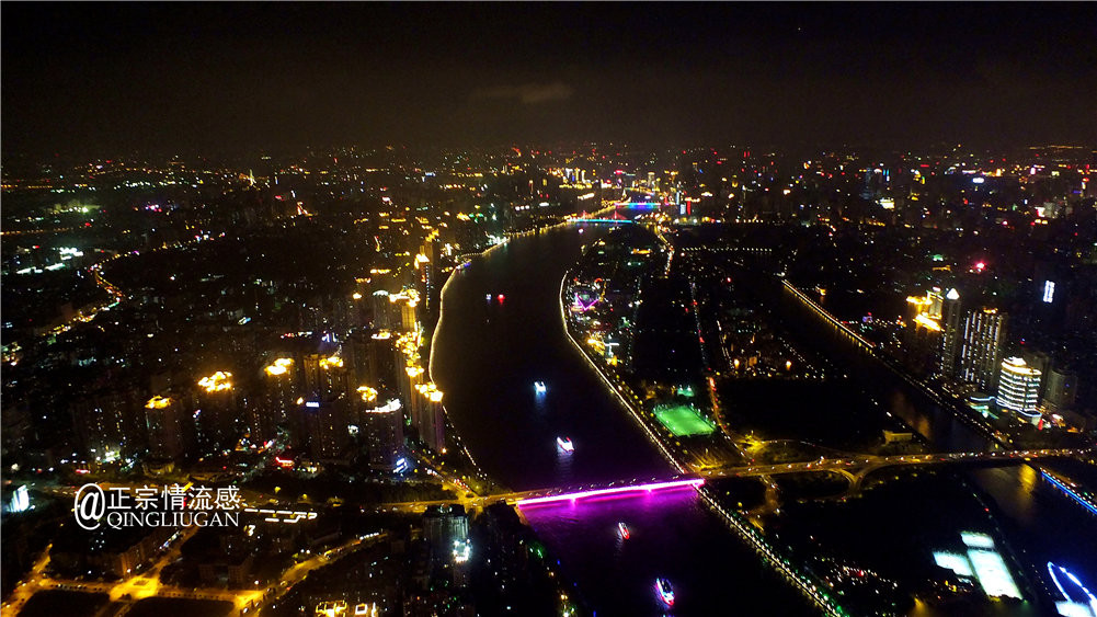 小型电梯来到了488米高,也是世界上最高的摄影观景平台,这是游客能够到达的制高点了。这里可以尽情、尽兴拍摄夜广州。放眼望去,广州国际金融中心区星光灿烂,霓虹闪烁的广州大桥下游船接踵驶过。