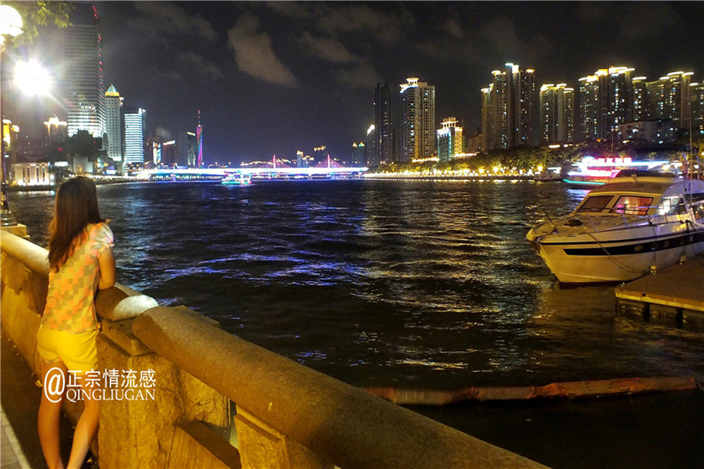 美餐过后,我们搀扶着来到珠江边,一起吹风闲聊的女孩,一幅惬意曼妙的风景。准备夜游珠江。