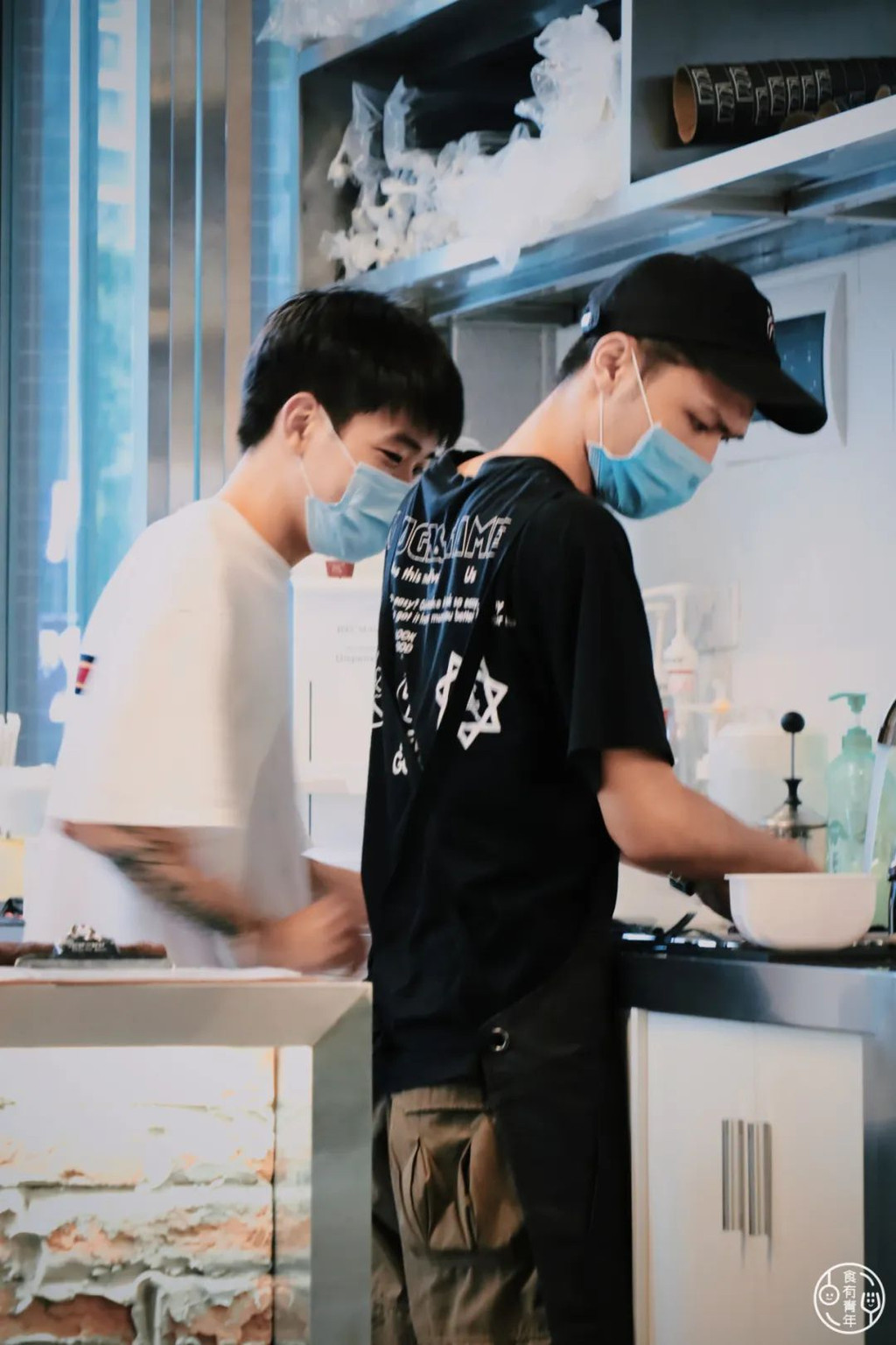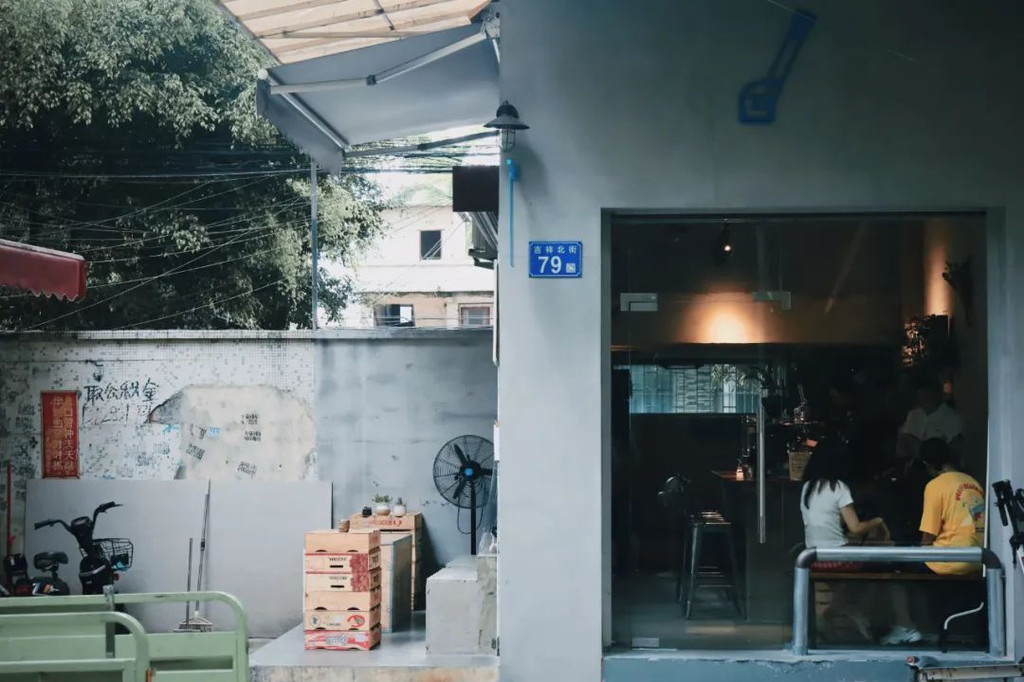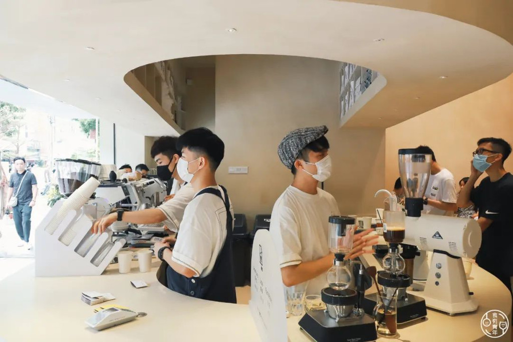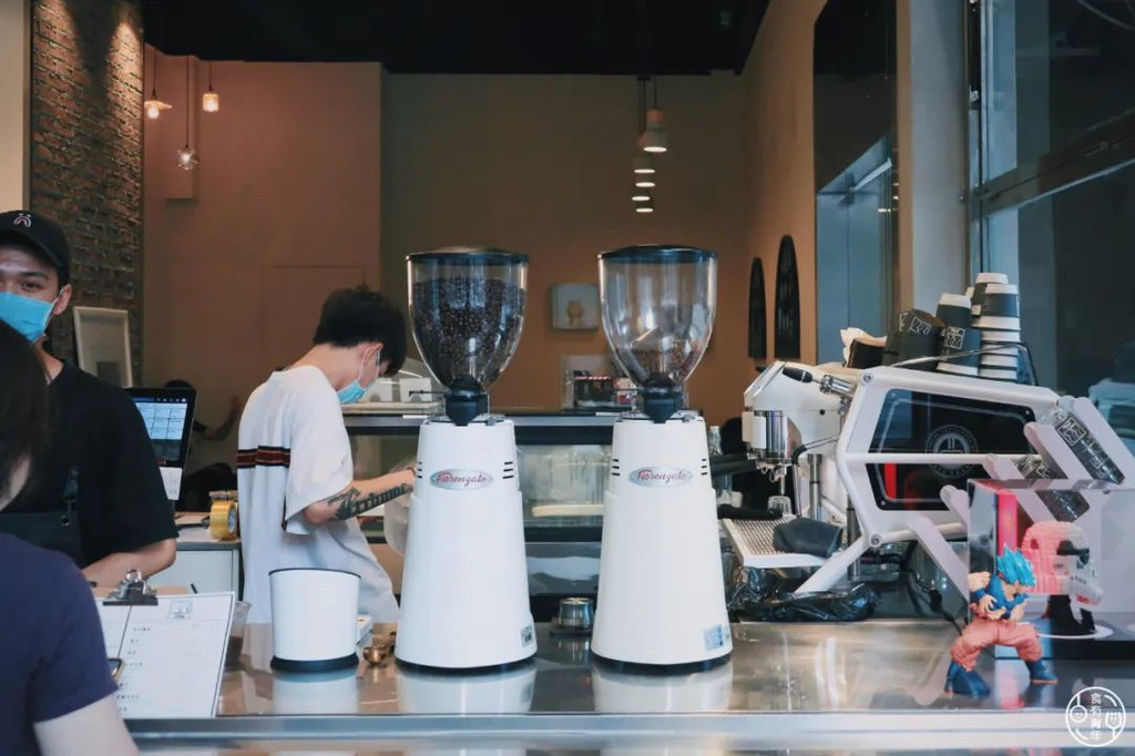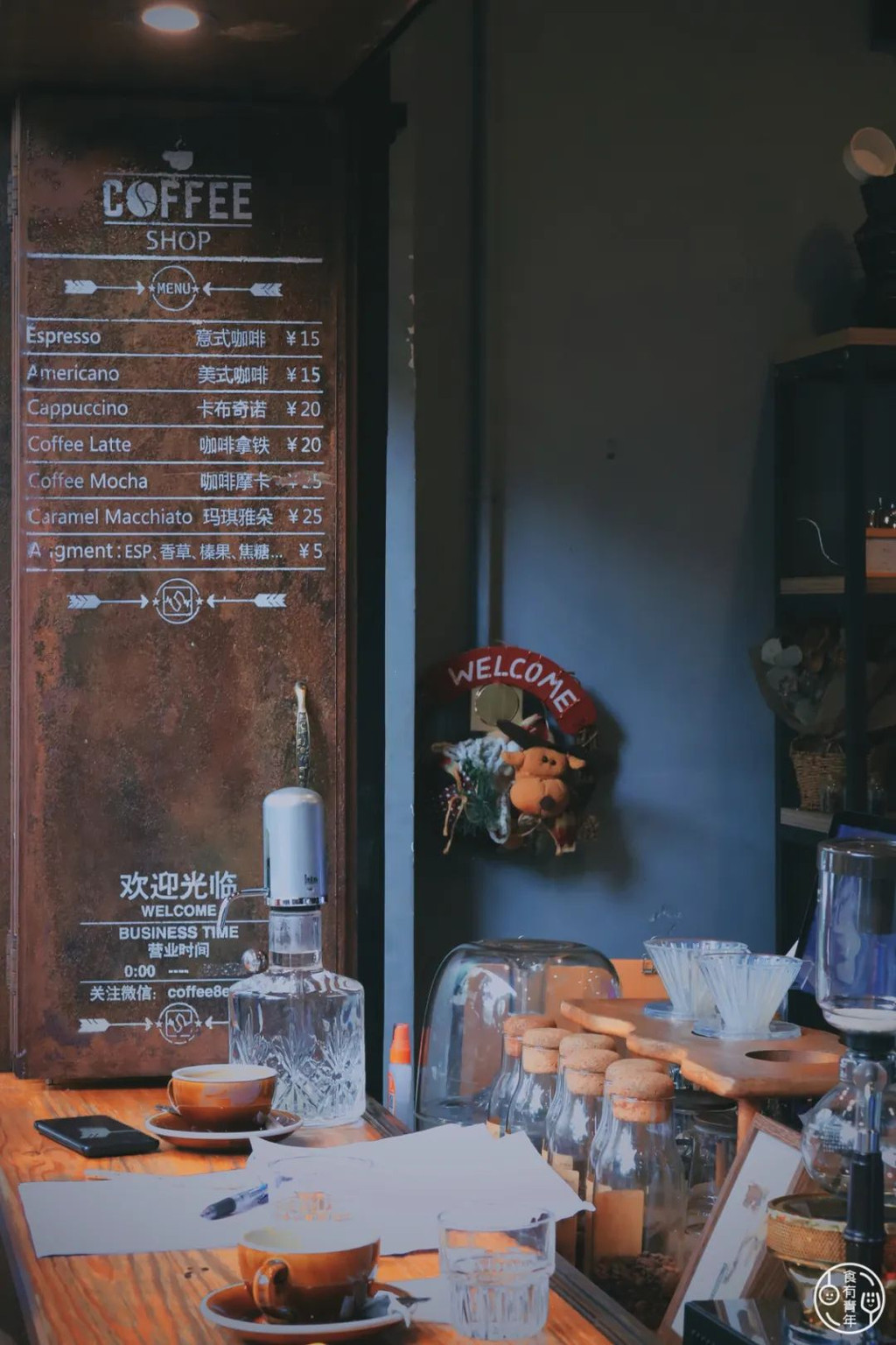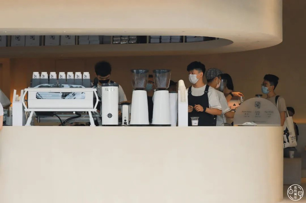 店内每个角落都细心布置着文化符号。店外的箱子座位适合站街摆拍,夏热时那大窗盖上薄膜让室内开空调。不得不提的是,吧台上面一台透明外壳的金属内壳咖啡机,看着像组装机,特别浪漫。