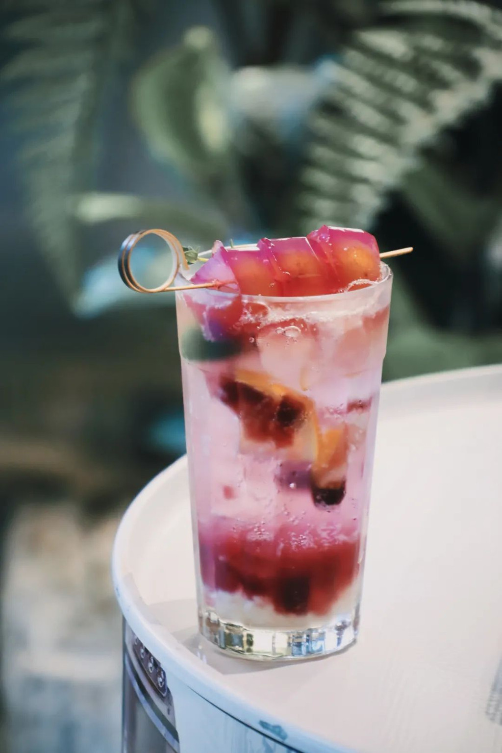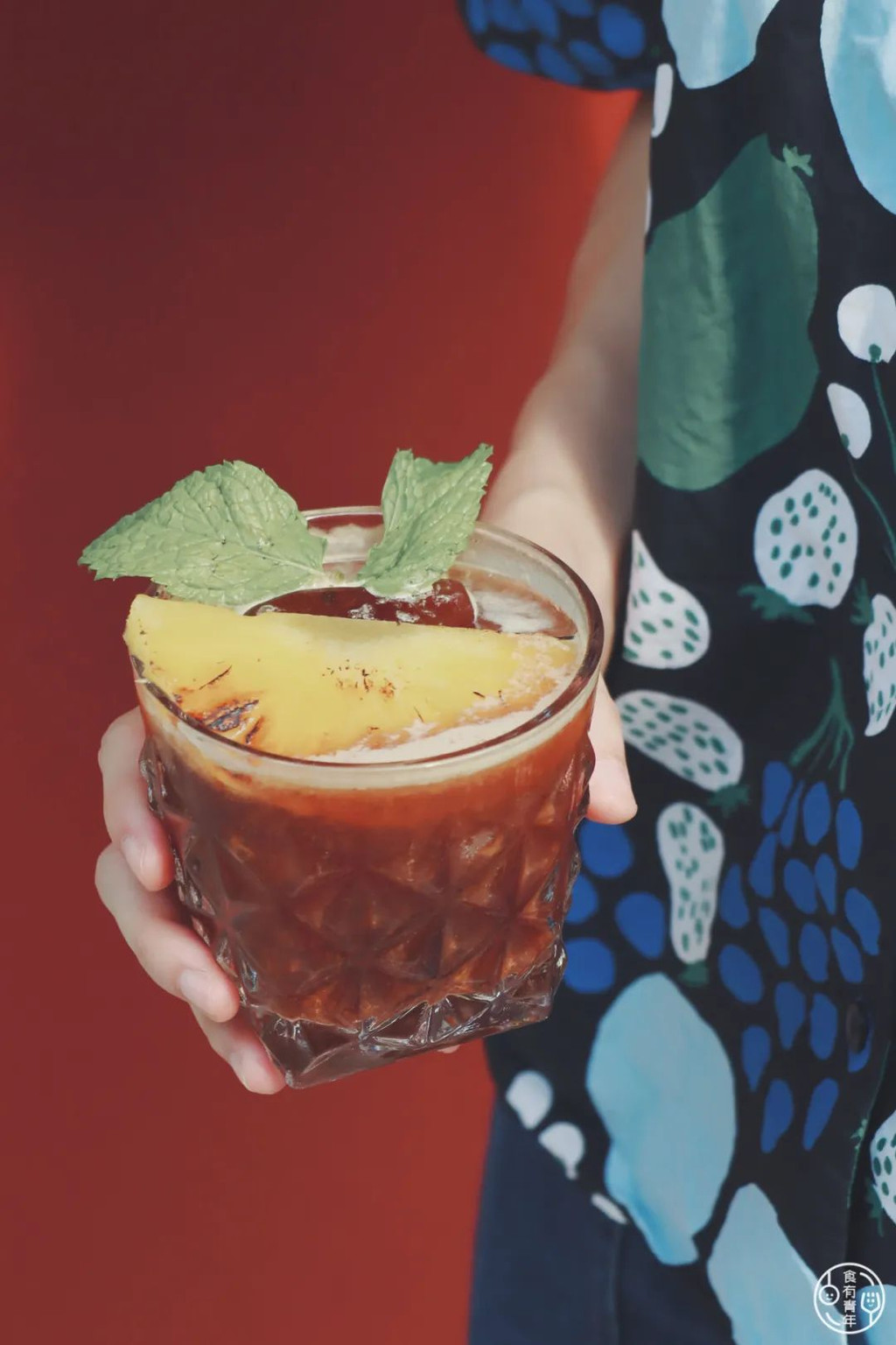 【夏日冲击波】菠萝味的泡泡糖,咖啡浓缩味较重。新榨菠萝汁混有无花果和红酒共煮,喝到底部有石榴肉。