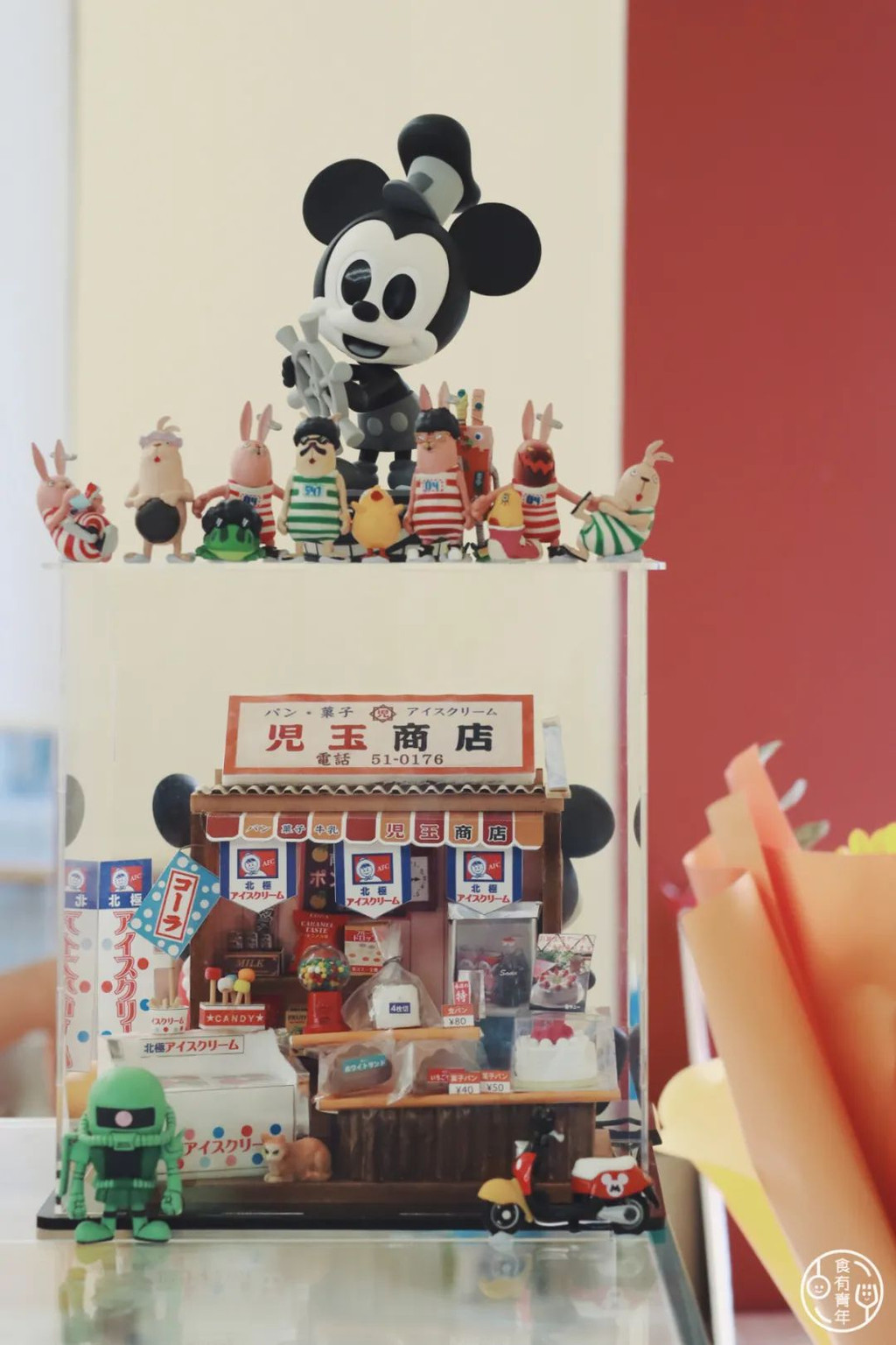 古灵精怪的Mia打造的快乐空间,户外有一可随意挪位的木箱,室内大桌围起一圈,陌生人面对面很快相熟悉。角落摆有迪尼尼小车、米奇蒸汽船、表情包水果和昭和铺模型。菜单有黑啡白啡和非啡,特调分开一张菜单。