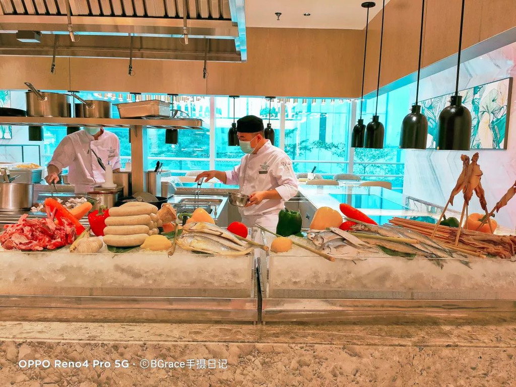 琳琅汇全日餐厅提供零点美食及环球美味,四个开放式烹饪台设计让宾客可现场观赏大厨精湛手艺。