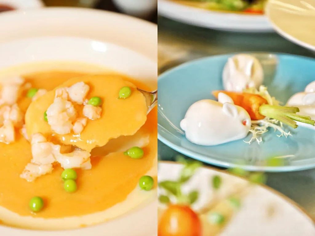中餐厅还为我家宝宝准备了鲜虾仁芙蓉蒸蛋,趣致椰汁兔仔糕,春天味蕾里的曼妙,没办法跟你形容,你只要品尝了才知道。