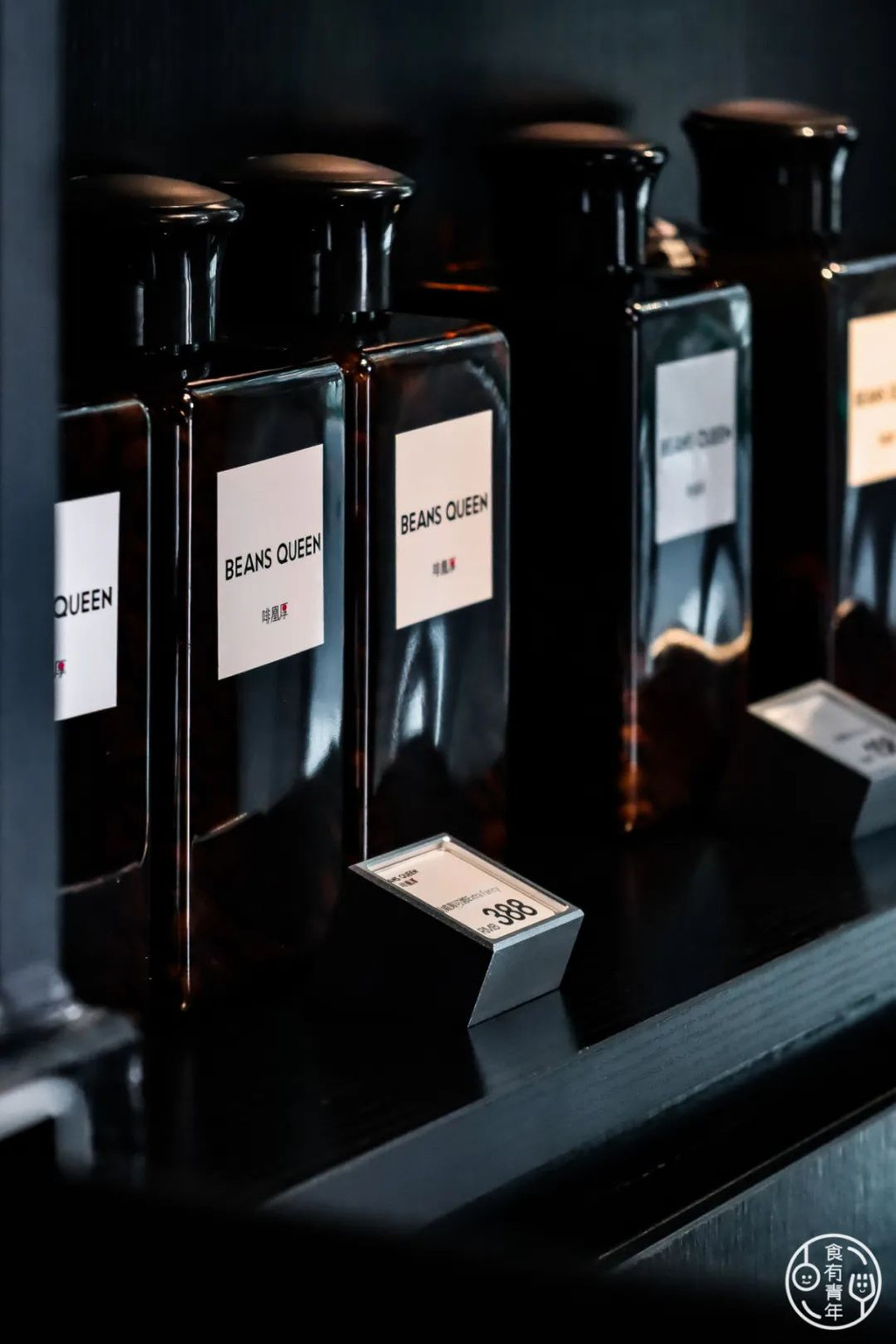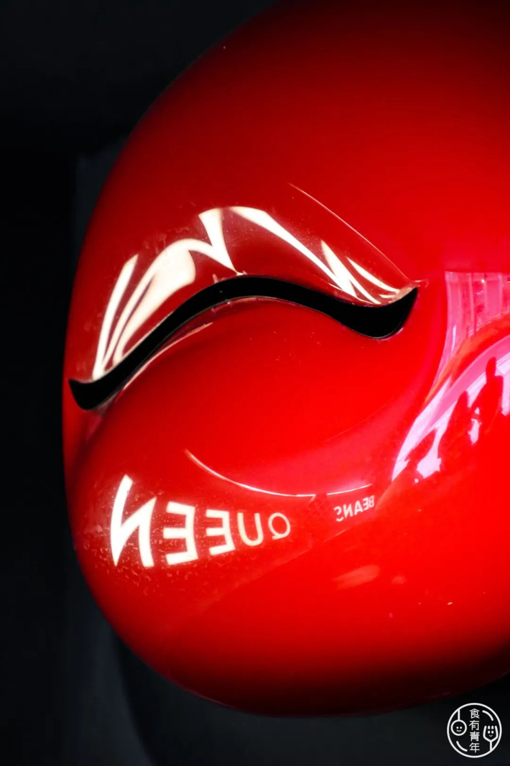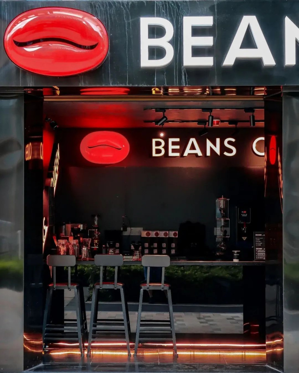 这次的店面披上黑衣,身上低调点缀金光;远远看到一个嘟起的小唇,走近看原来是红色咖啡豆的立体灯箱。