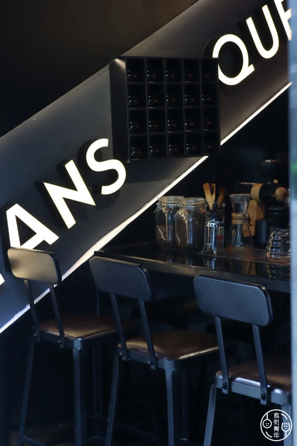 新店风格是啡凰厚心目中的样貌,透露着认真,安静,内敛。黑色开放式吧台,深沉直线条质感,吧台左为手冲,右边是意式,后面在做冰滴。