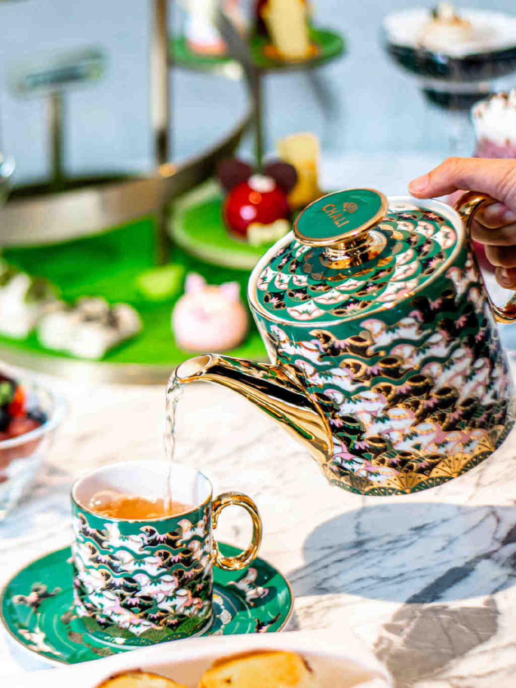 花香四溢的茶配搭葱油饼柚子沙律三文鱼点醒了我们沉睡的味蕾。