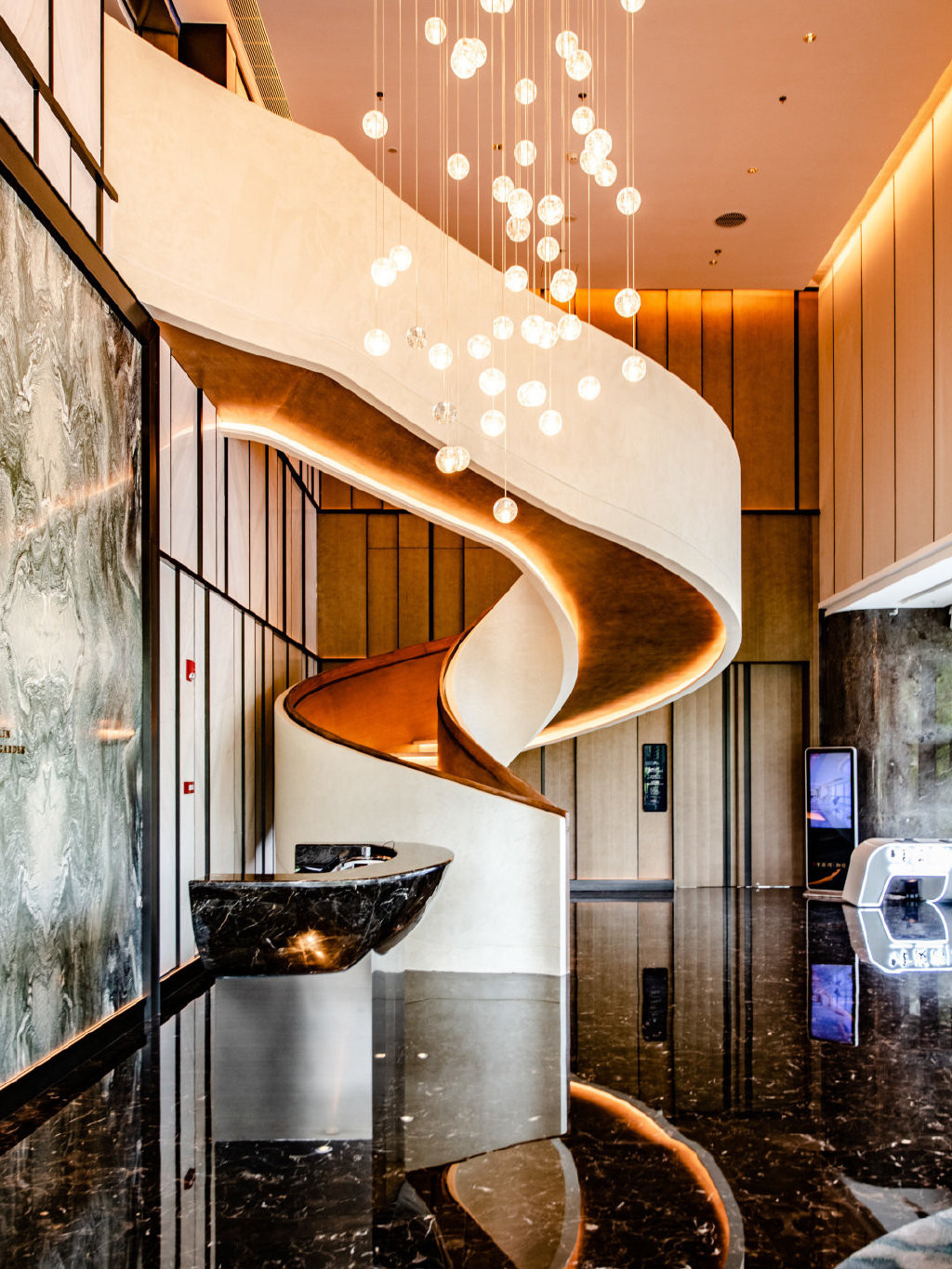 一走进广州南沙金茂万豪酒店内的林苑中餐厅,我就被它精致有品的装潢迷住了,据说它的设计思路源自粤剧舞台装饰和服装细节,还融入了非常容易出人像大片的旋转楼梯等打卡元素,妥妥的颜值在线。
