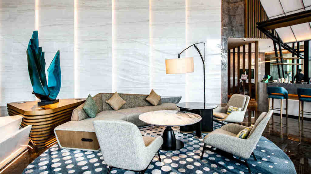 步入大堂,只见线条感极强的空间、恰好的光线、开阔的视野、个性张扬的艺术品和极具设计感且舒适的沙发,就这样配搭成了深得我心的都市会客厅。