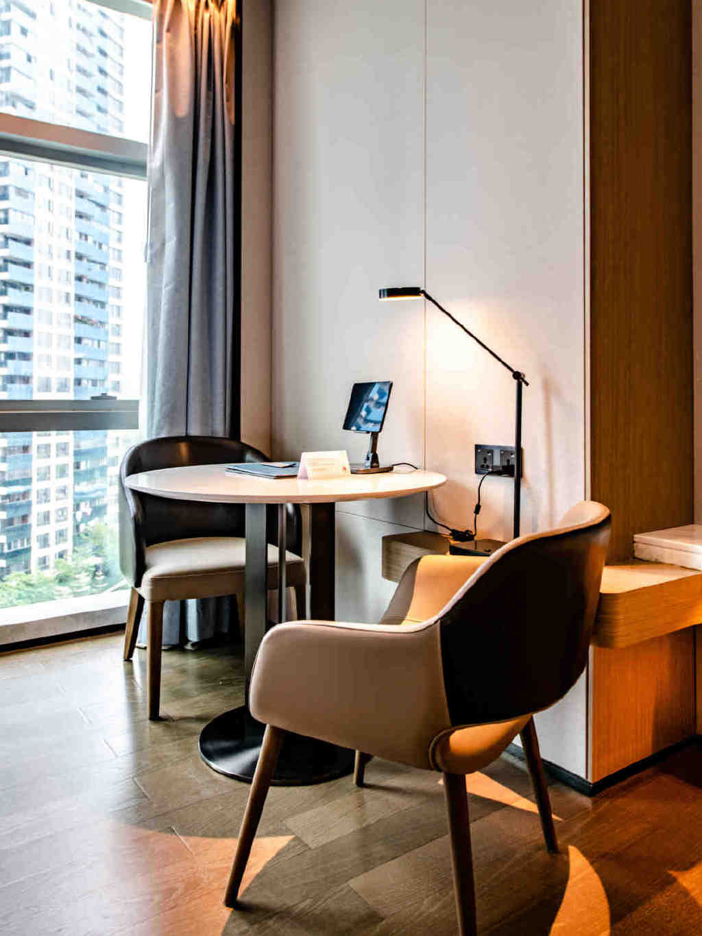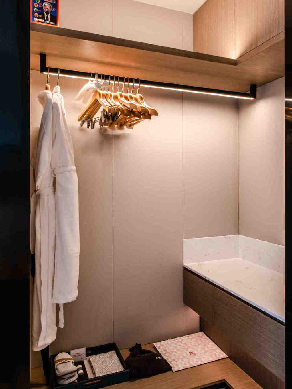 在工作人员的引导下,我们迅速办理入住,然后搭乘电梯去往九层我们的住所。推门走进我们此行入住的房间,只见屋内空间开阔、窗明几净,配套设施齐全,衣帽间的位置竟然还可以有换鞋的座位,真的是太贴心了!